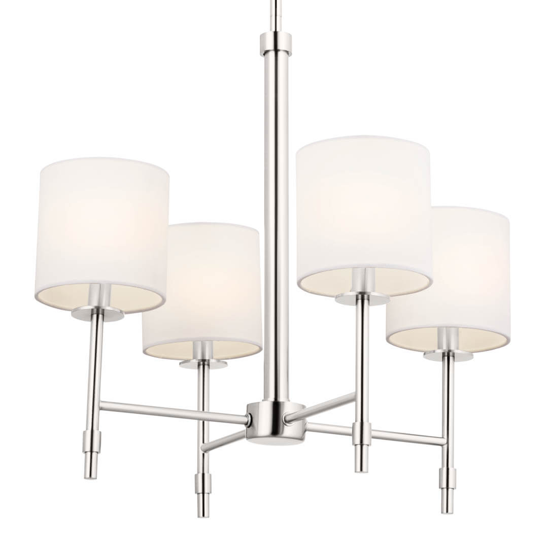 Janie 20" Four Lights Mini Chandelier, Polished Nickel / Fabric Drum Shade