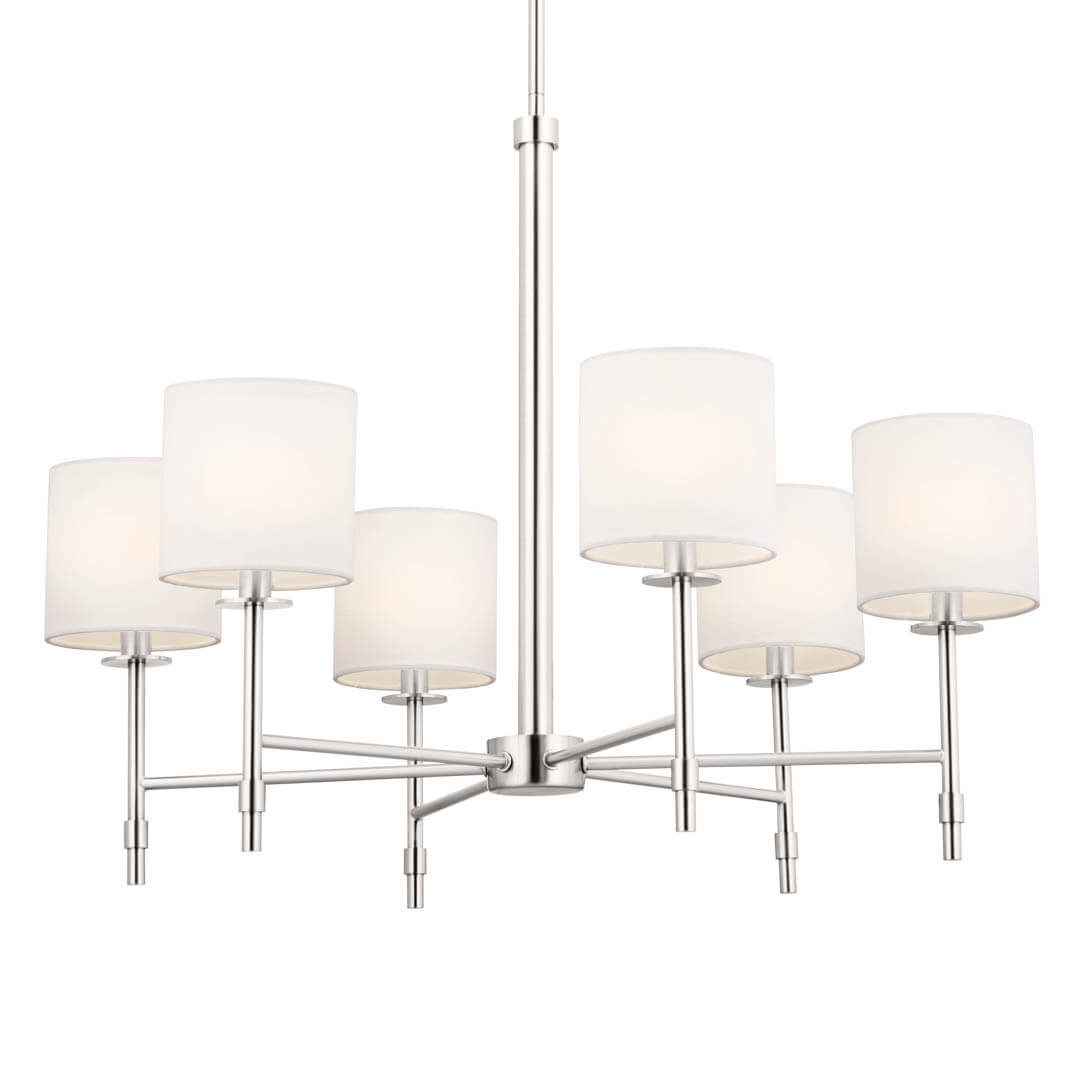Janie 28" Six Lights Chandelier, Polished Nickel / Fabric Drum Shade