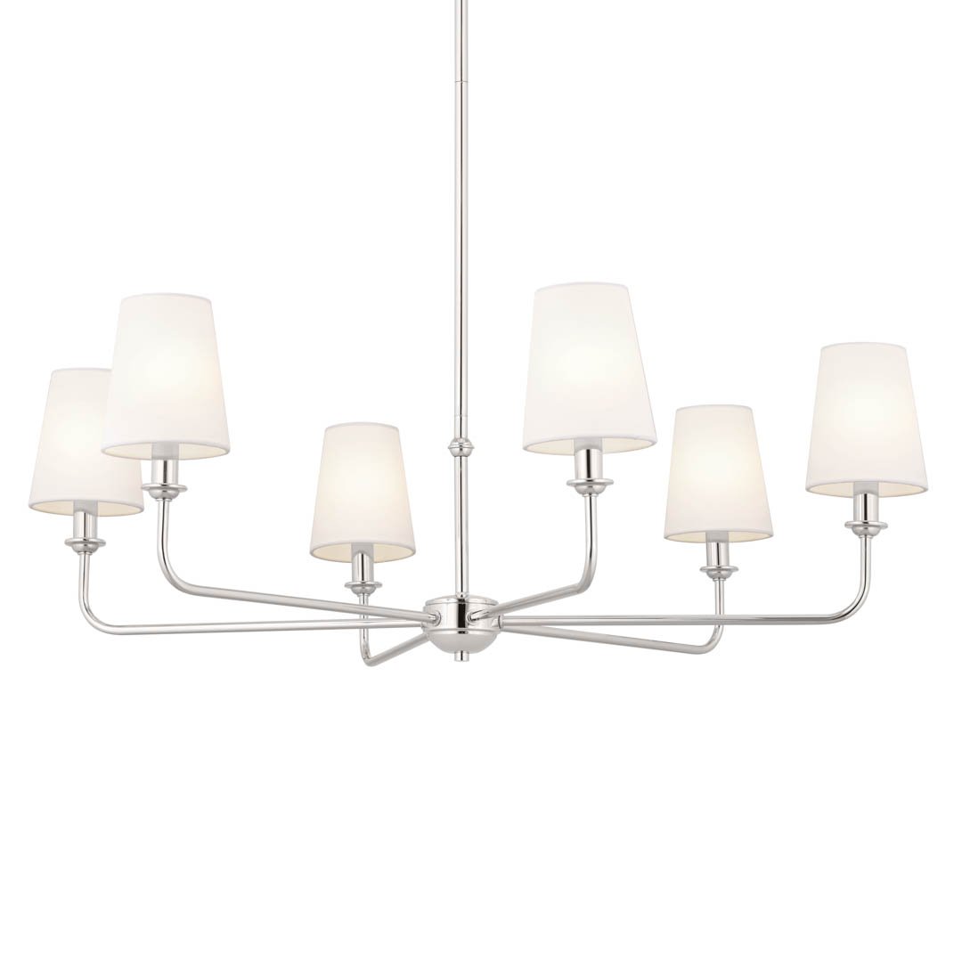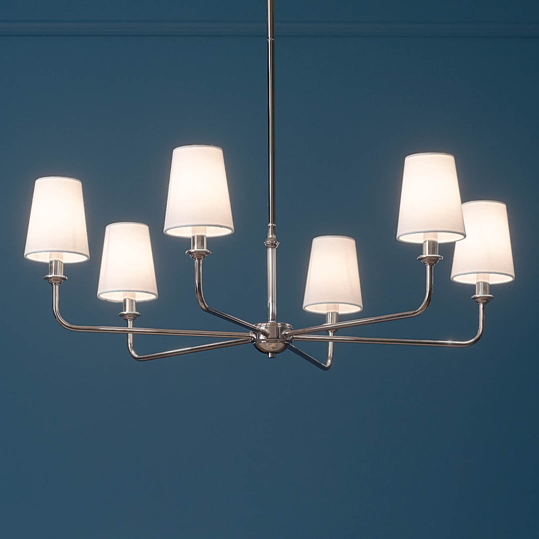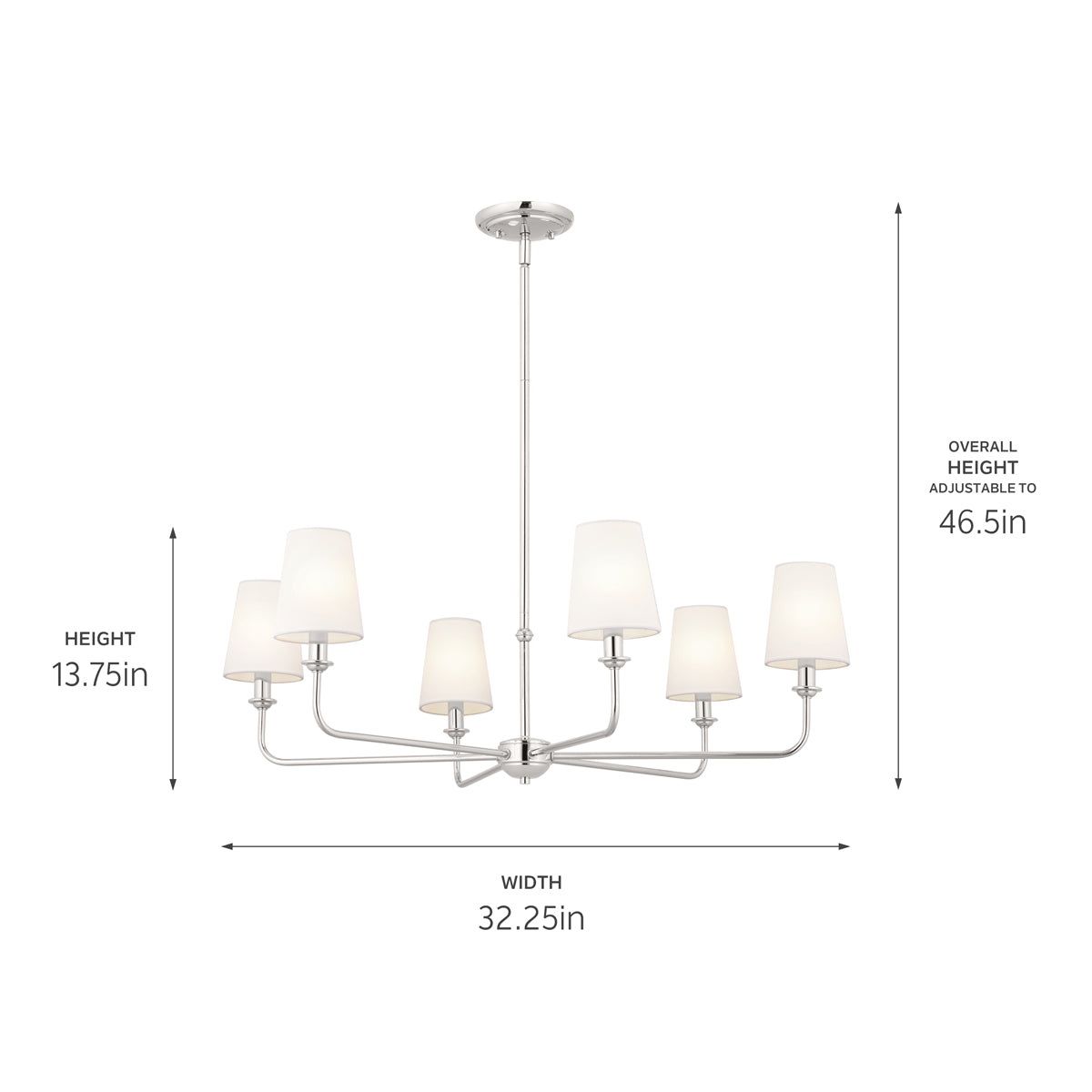 Mariella 32" Six Lights Chandelier, Polished Nickel / Fabric Bell Shade