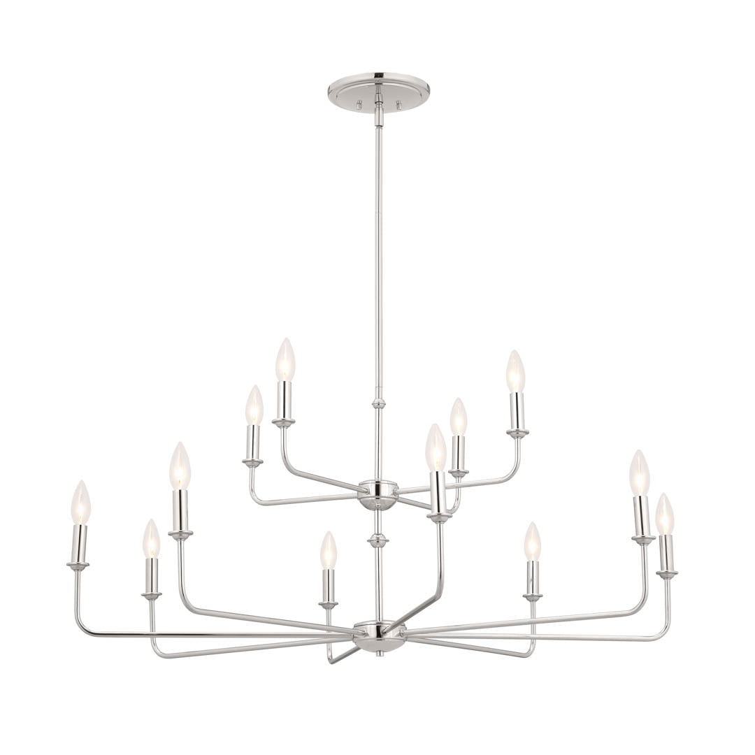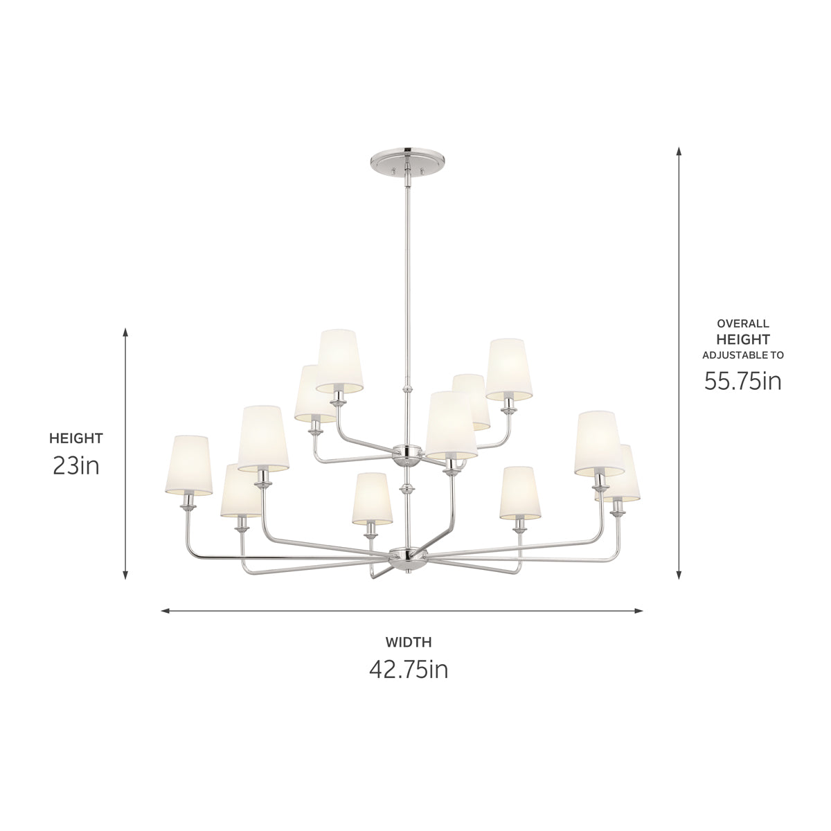 Mariella 43" Twelve Lights Chandelier, Polished Nickel / Fabric Bell Shade