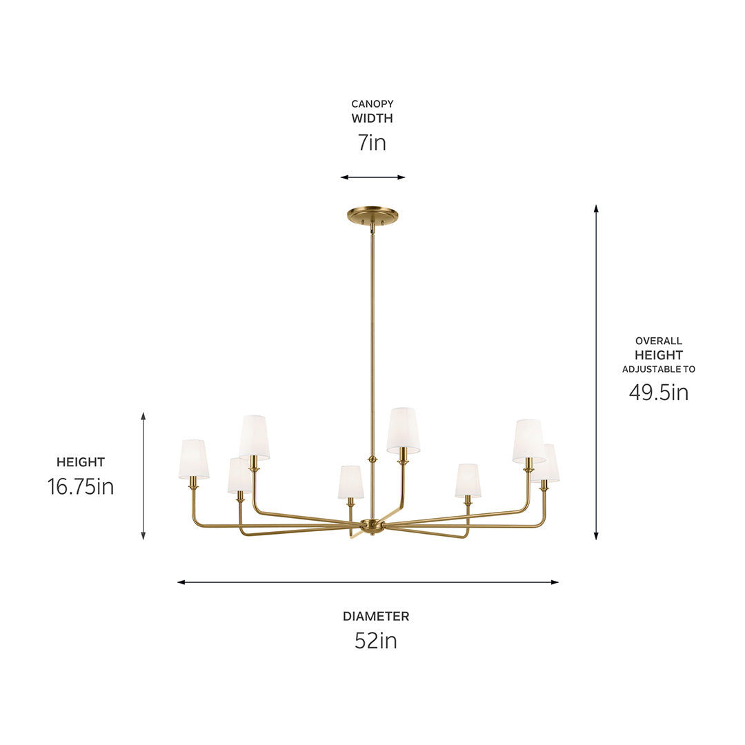 Mariella 52" Eight Lights Chandelier, White Linen Shade / Brushed Natural Brass
