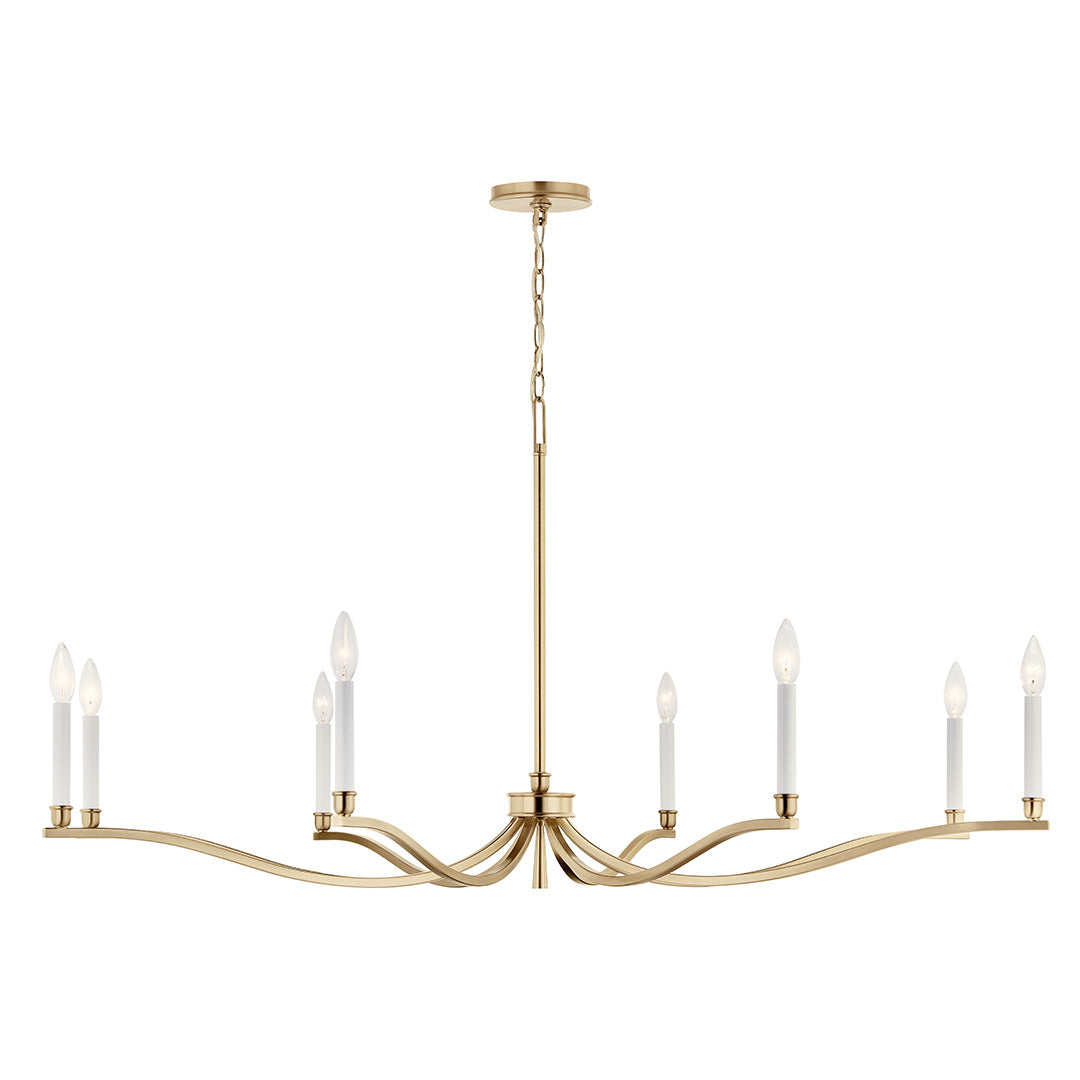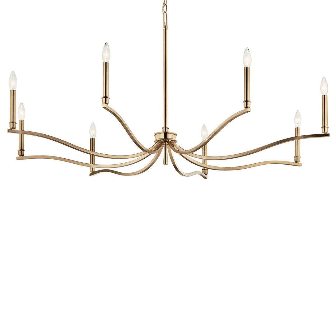 Introduce an updated but familiar silhouette with a transitional eight-light chandelier that's perfect over a family great room or inviting dining table. Its chic finish adds stylish flair to gracefully curved arms that are inspired by the soft ripple of flowing water. Slim candle sleeves host the candelabra bulbs (not included) of your choice, offering an opportunity for a custom look and feel in your home.