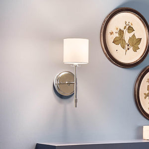Janie 5" One Light Wall Sconce, Polished Nickel / Fabric Drum Shade