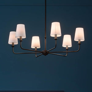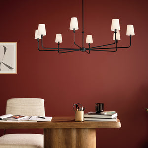Mariella 52" Eight Lights Chandelier, White Linen Shade / Black