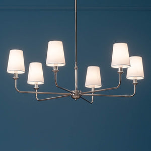 Mariella 52" Eight Lights Chandelier, White Linen Shade / Polished Nickel