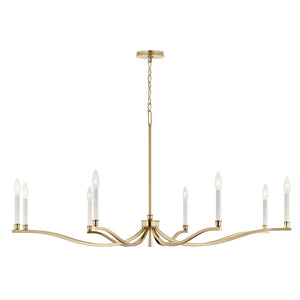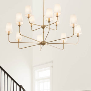 Mariella 43" Twelve Lights Chandelier, Brushed Natural Brass / Fabric Bell Shade