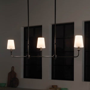 Mariella 4" Three Lights Linear Chandelier, Black / Fabric Bell Shade