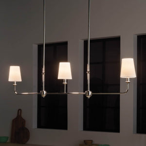Mariella 4" Three Lights Linear Chandelier, Polished Nickel / Fabric Bell Shade