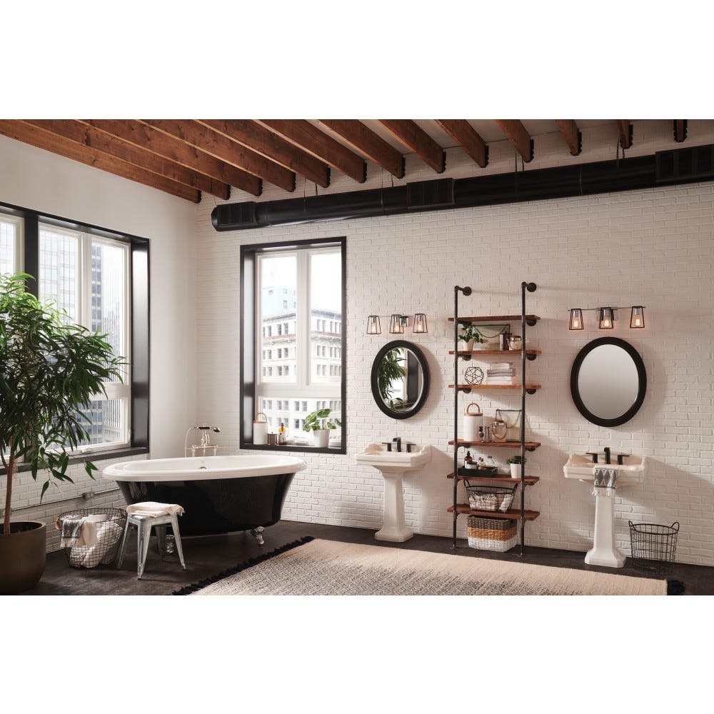 Inject a little industrial flair into your bathroom with this charming three-light vanity. Designed for bright, direct illumination, it features open shades without diffusers, adding to its effortless style. An intriguing finish adds depth, while the use of the recommended vintage filament style bulbs adds to the industrial motif. Perfect over a vanity mirror, this fixture allows for installation with its light up or down to best accentuate your space.
