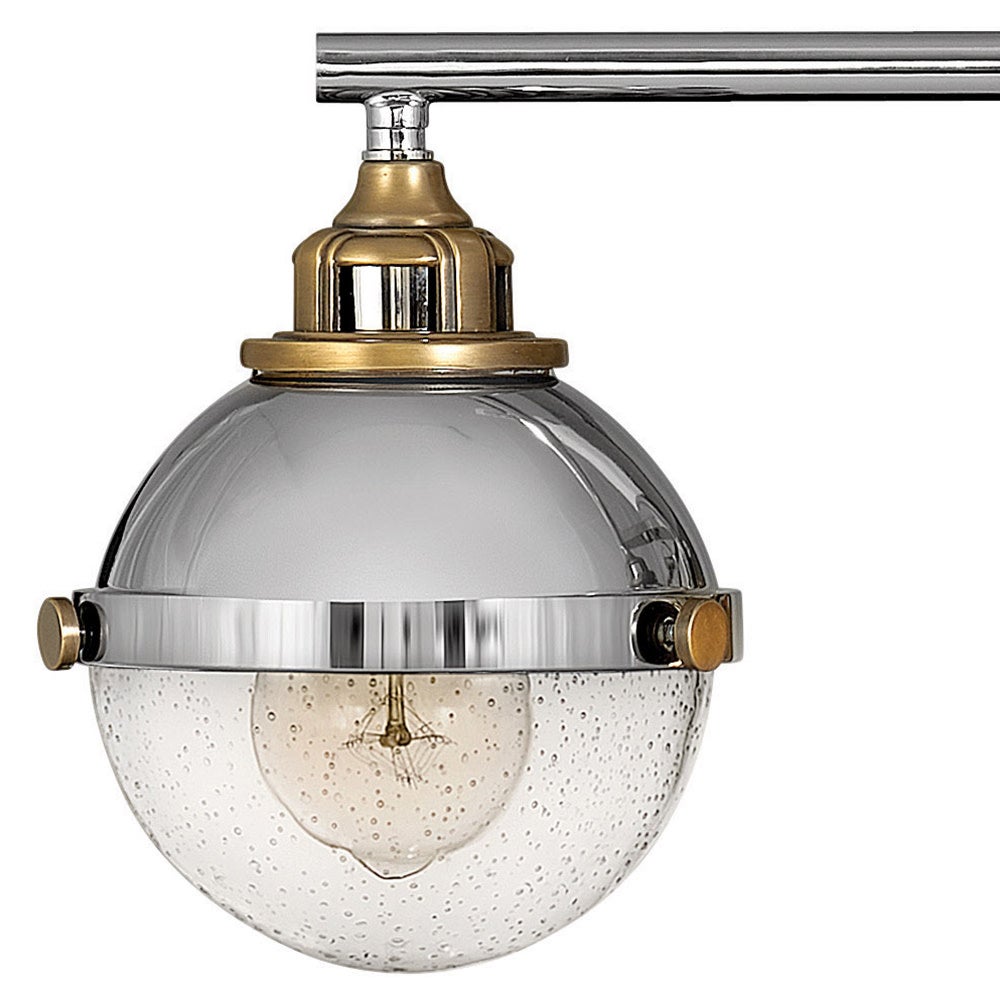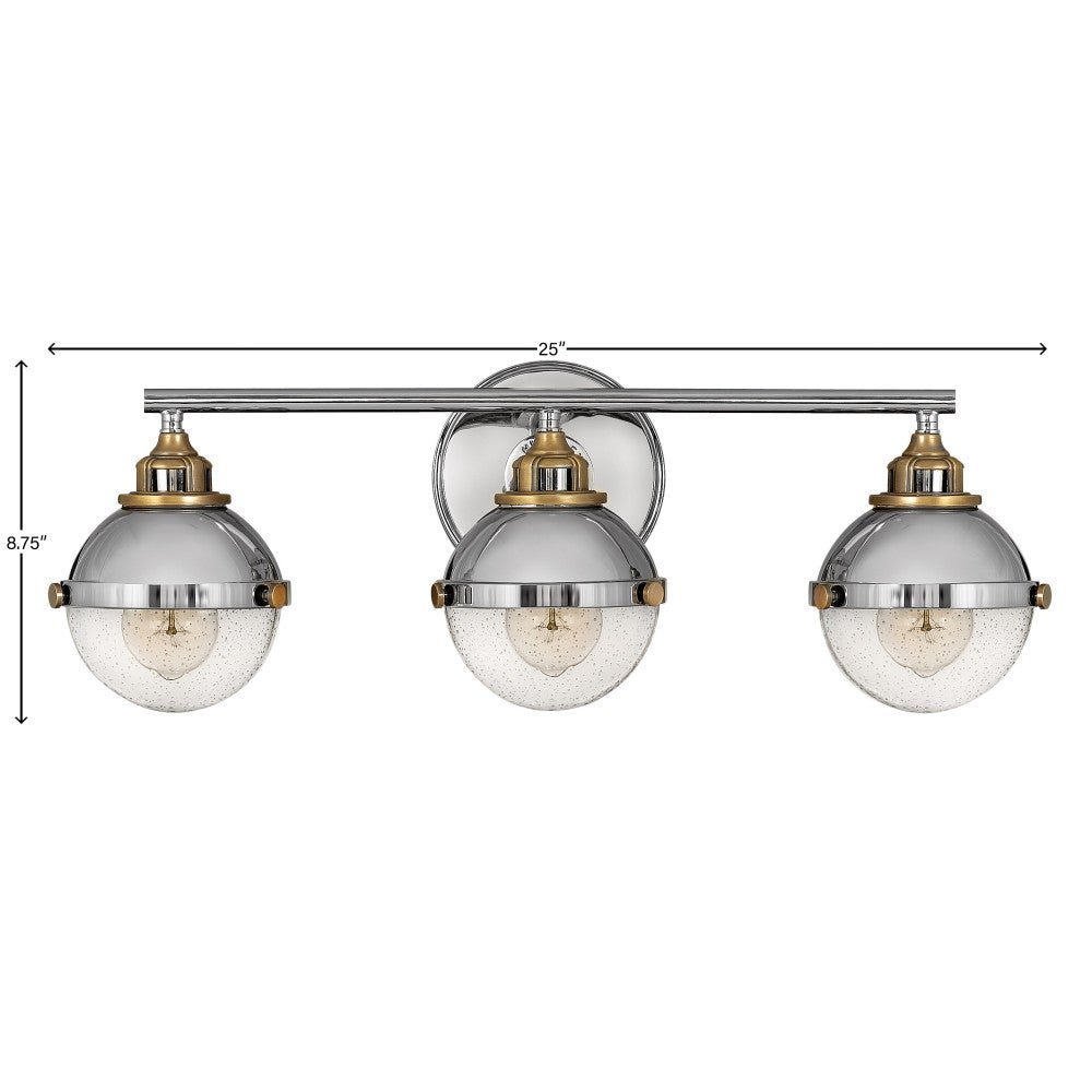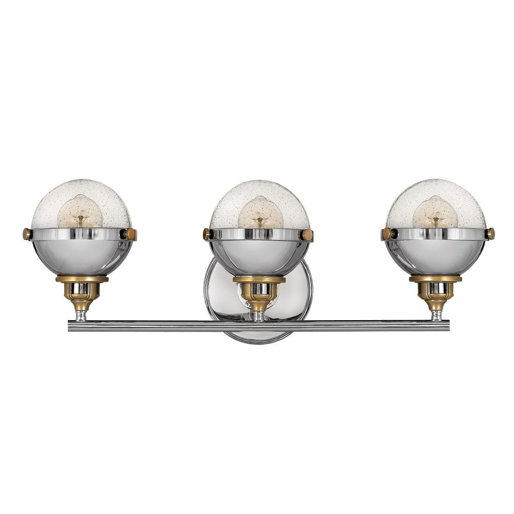 Distinctive design details bring rich vintage industrial character to a three-light orb vanity. Each light features a clear seedy glass diffuser secured with decorative knobs and augmented with a two-tone frame finish that adds depth and dimensionality. It's a perfect choice in a classic or traditional bathroom space, offering richness and charm that's sure to enliven surrounding fixtures and decor.