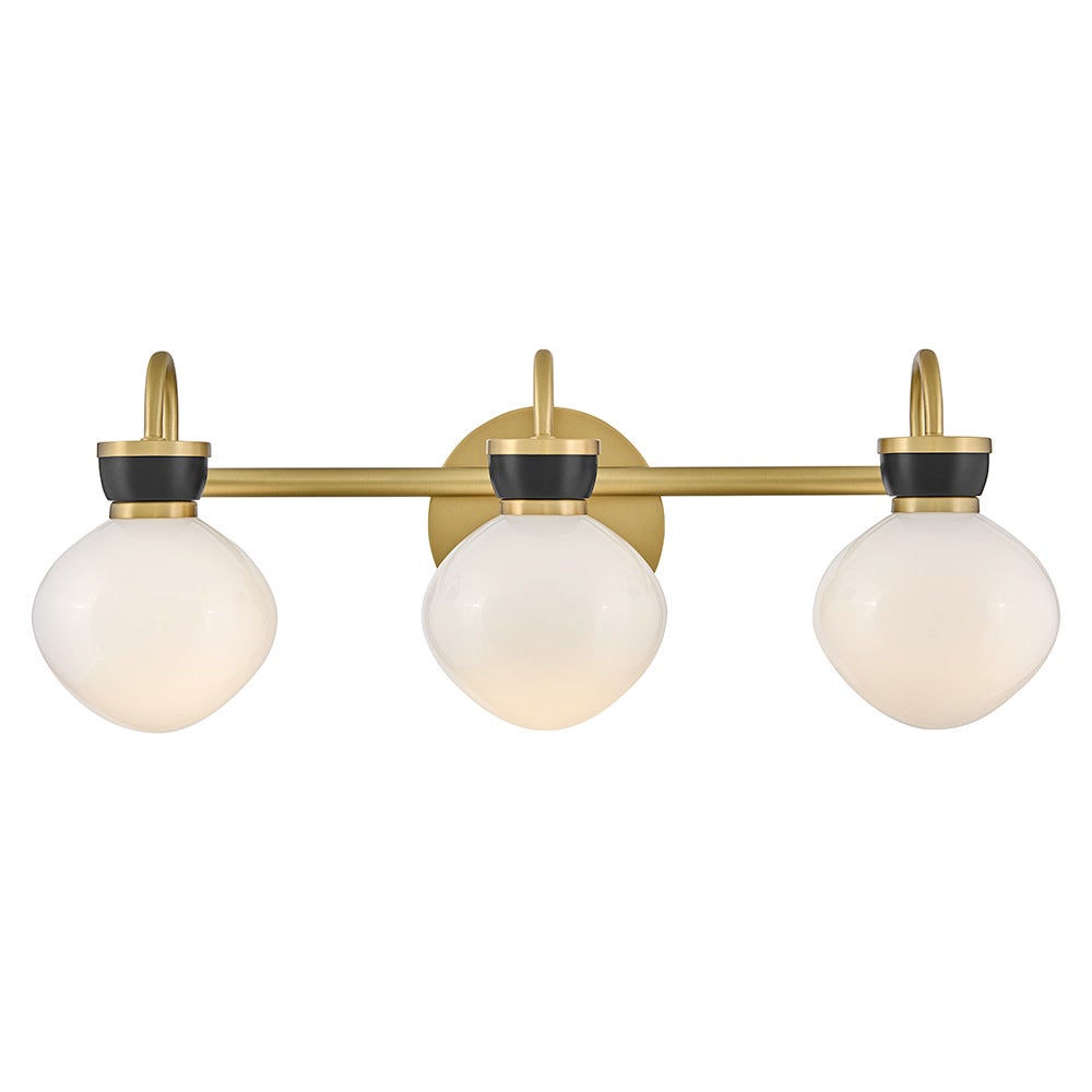 Saton 25" Three Lights Medium Vanity, Lacquered Brass / Black