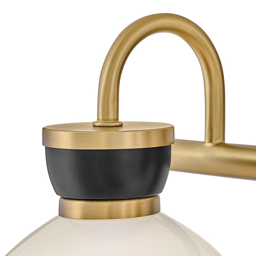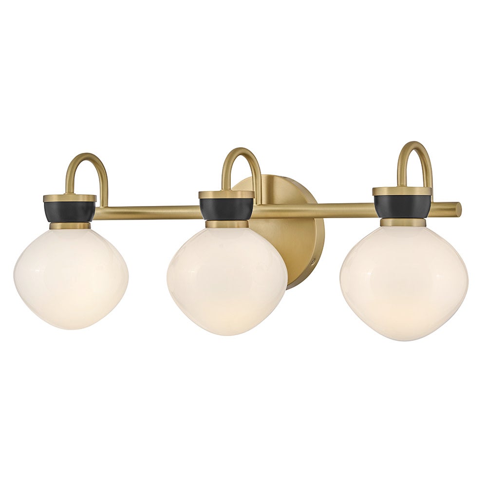 For vanities that call for extra sparkle, this three-light fixture lines up its curving shades in an inviting row that stretches from one side of the mirror to the other. Each opal globe offers its own cloud like pool of light, together creating a glow that feels enveloping and flattering. The slender bar and rounded backplate keep everything visually tidy so the playful details and gentle curves can shine. Turn it on and the entire vanity area feels buoyant, charming, and beautifully composed.