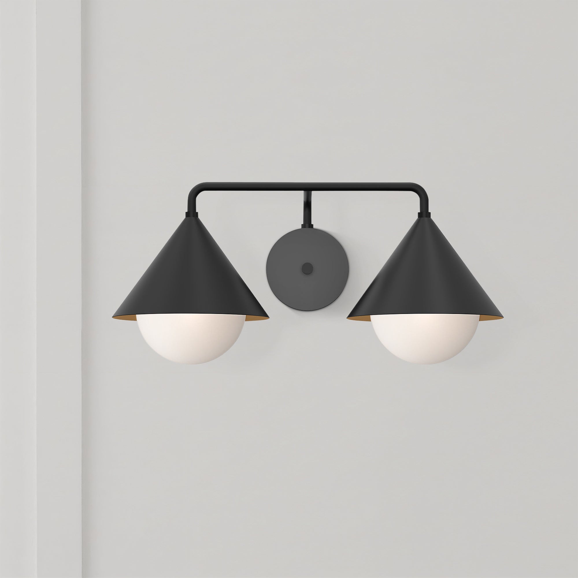 Aly 21" Two-Light Vanity Sconce, Matte Black/Opal Glass