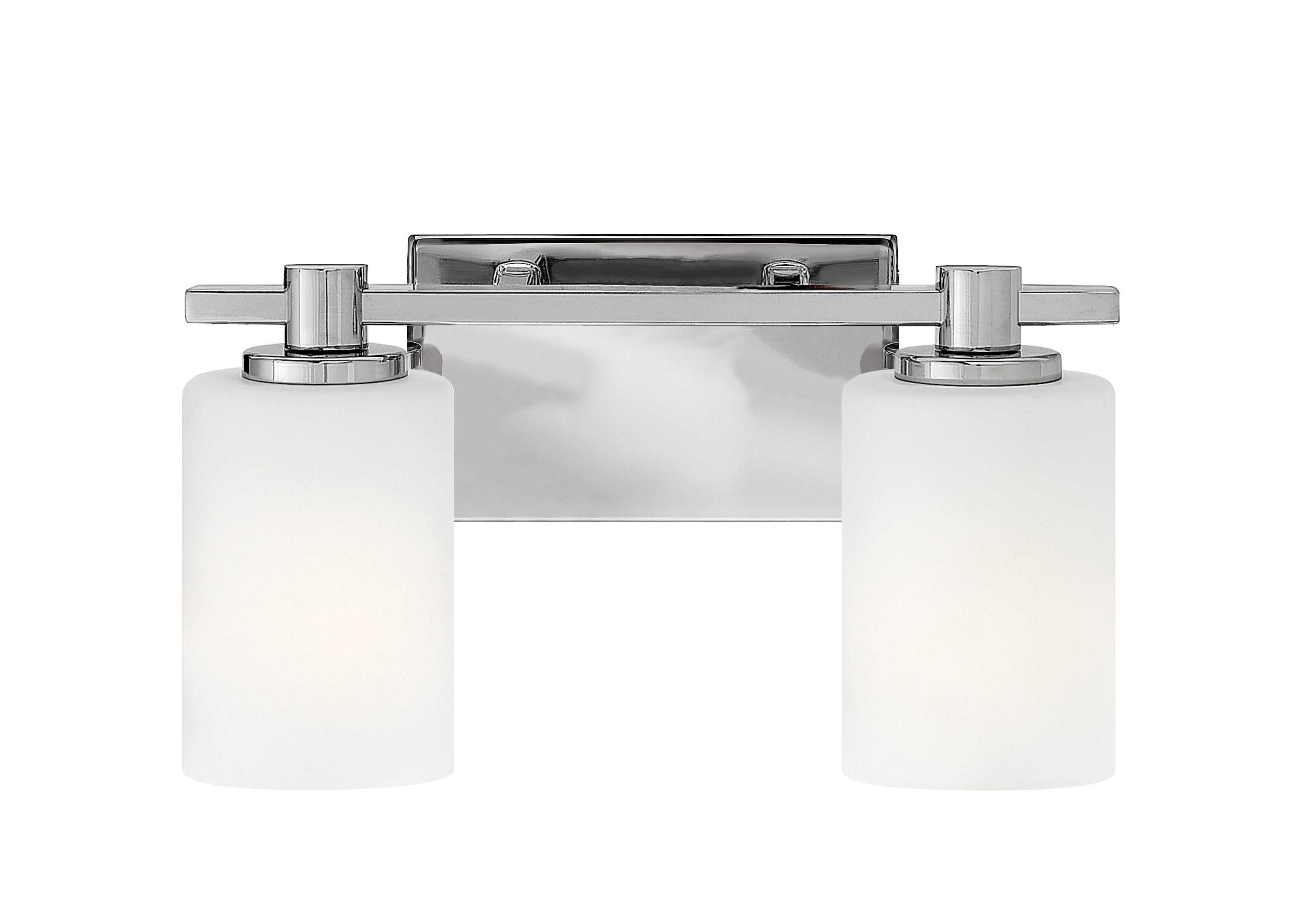 For a long counter or shared sink, this modern two-light bathroom vanity light stretches gracefully across the wall, with a pair of glowing glass cylinders balanced on a slim metal bar. Each shade offers its own pool of flattering light, so the space is evenly illuminated whether you are sharing the mirror or getting ready solo. Use it over a single basin to make the whole wall feel more expansive or center it across a modest double vanity for a clean, coordinated finish. Its size makes it especially useful in townhomes and smaller primary baths where every inch counts.