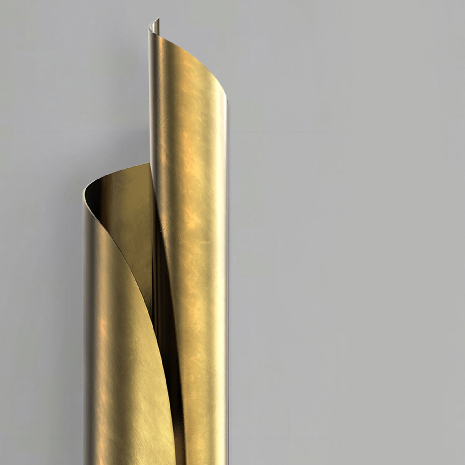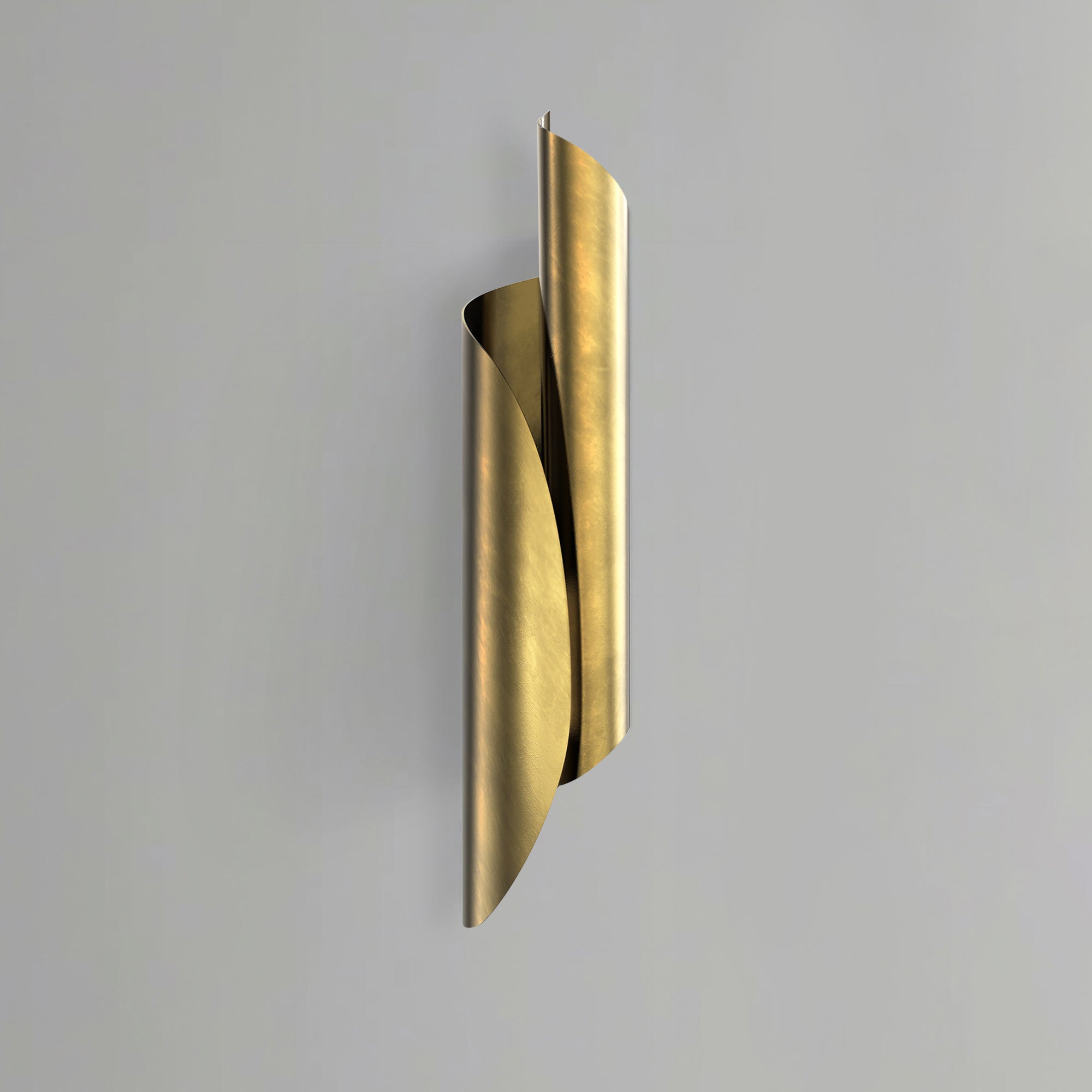 Enticing origami-inspired modern gallery fare suggests a deco personality as this modern wall/vanity light delivers a striking look of sculptural decadence. A parchment scroll aesthetic revives old world beauty, made contemporary with a crisp silhouette and lush finish over metal construction. Fluid asymmetry stands out in an extraordinary LED light suited to living rooms, entryways, bedrooms, and parlors.