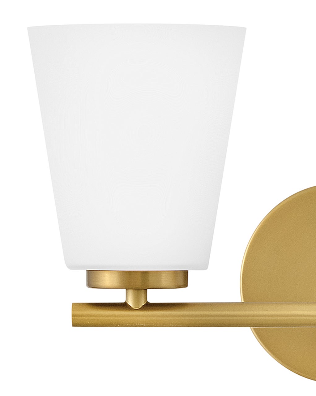 - Pair of etched opal shades offers balanced, flattering light from both sides of the vanity