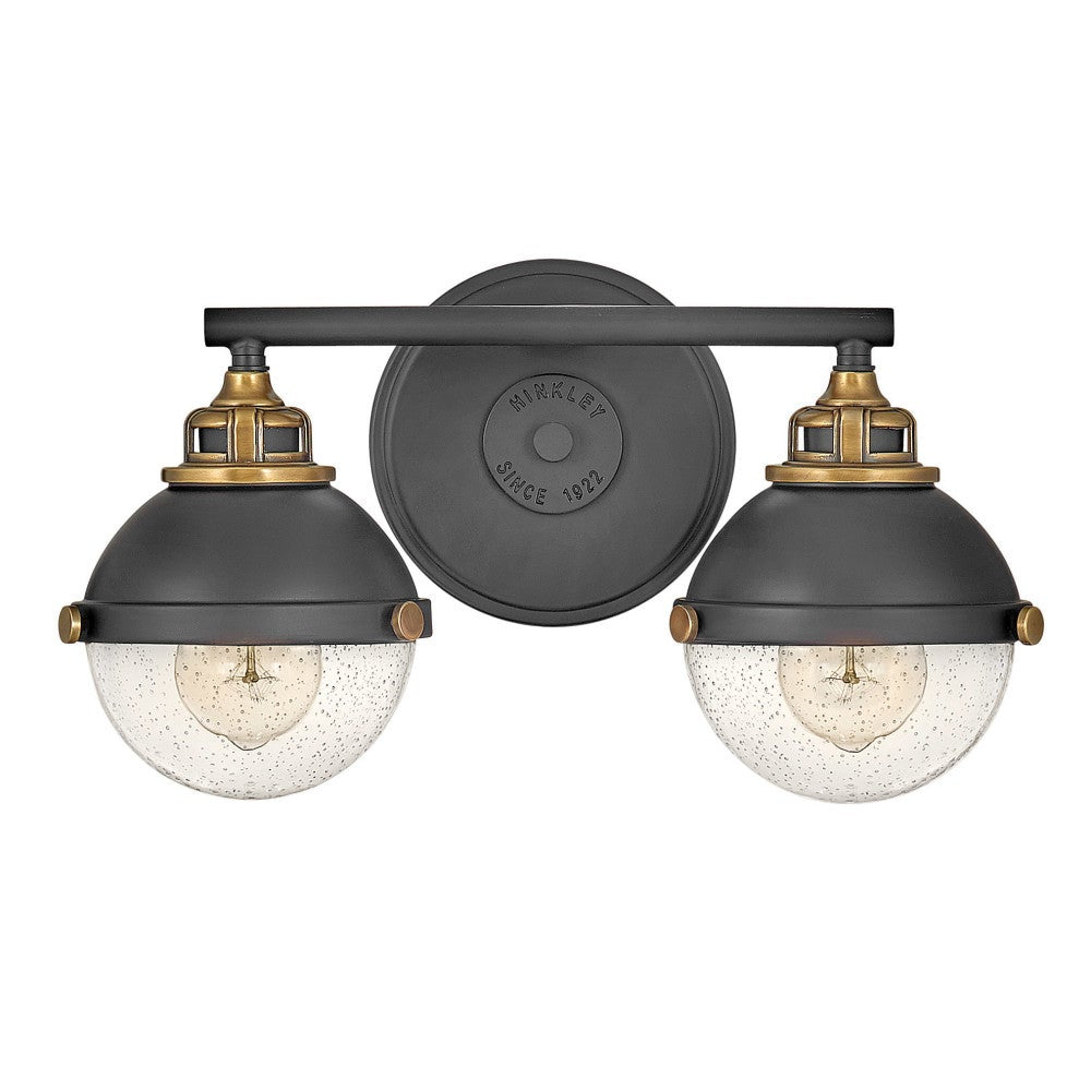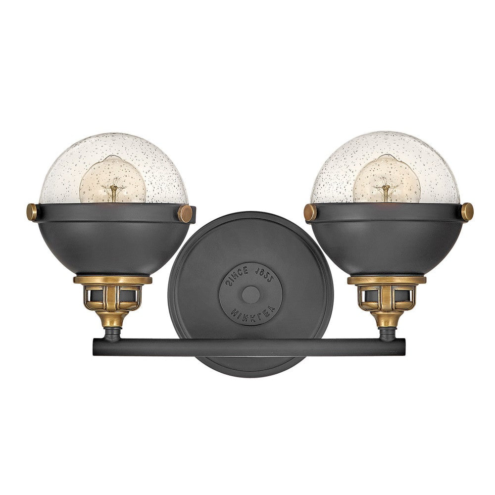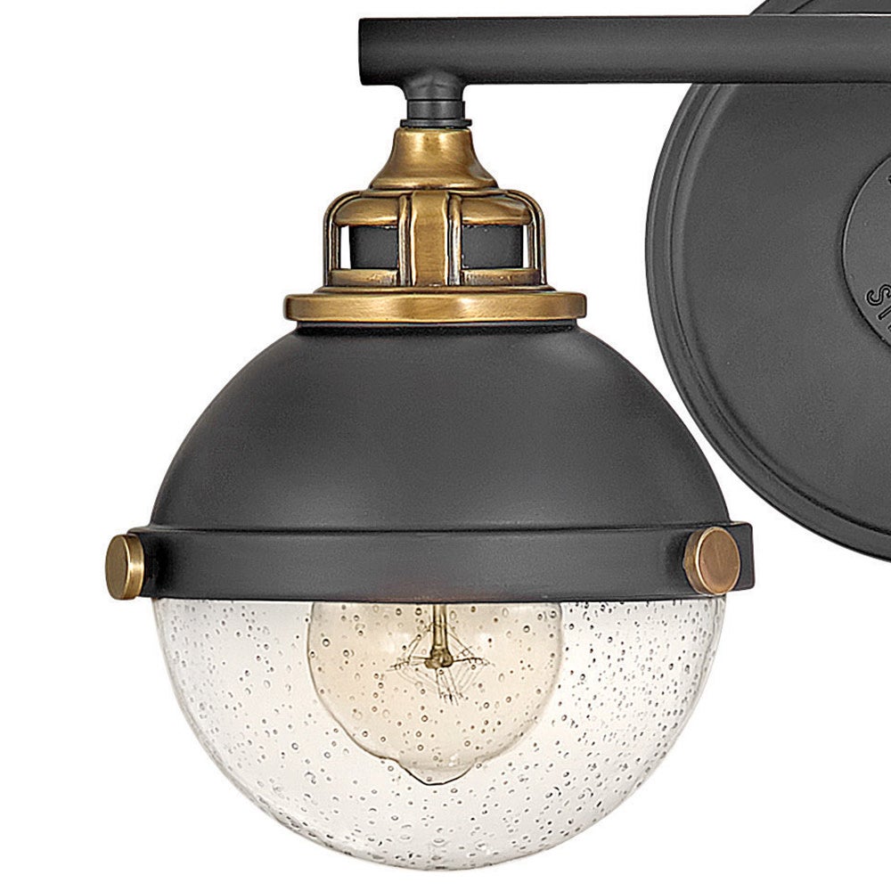 Revamp the look of your bath with a vintage industrial two-light orb vanity. Perfect for the vanity, it offers clear seedy glass and chic curves, all augmented with decorative details and knobs. A two-tone finish completes the look while highlighting its decorative appeal and dimensionality. It's the perfect fit for edgy traditional decor motifs.