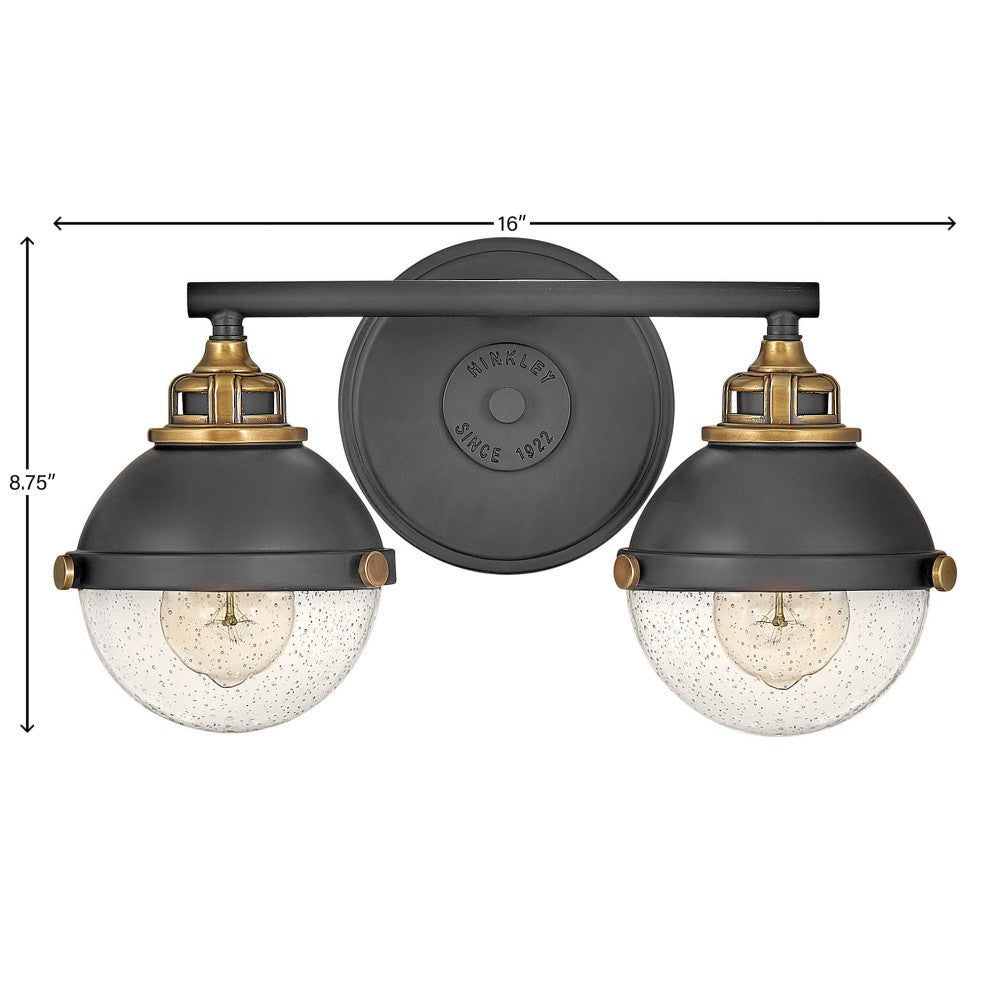 Marquis 16" Two Lights Small Vanity, Black / Heritage Brass Accents