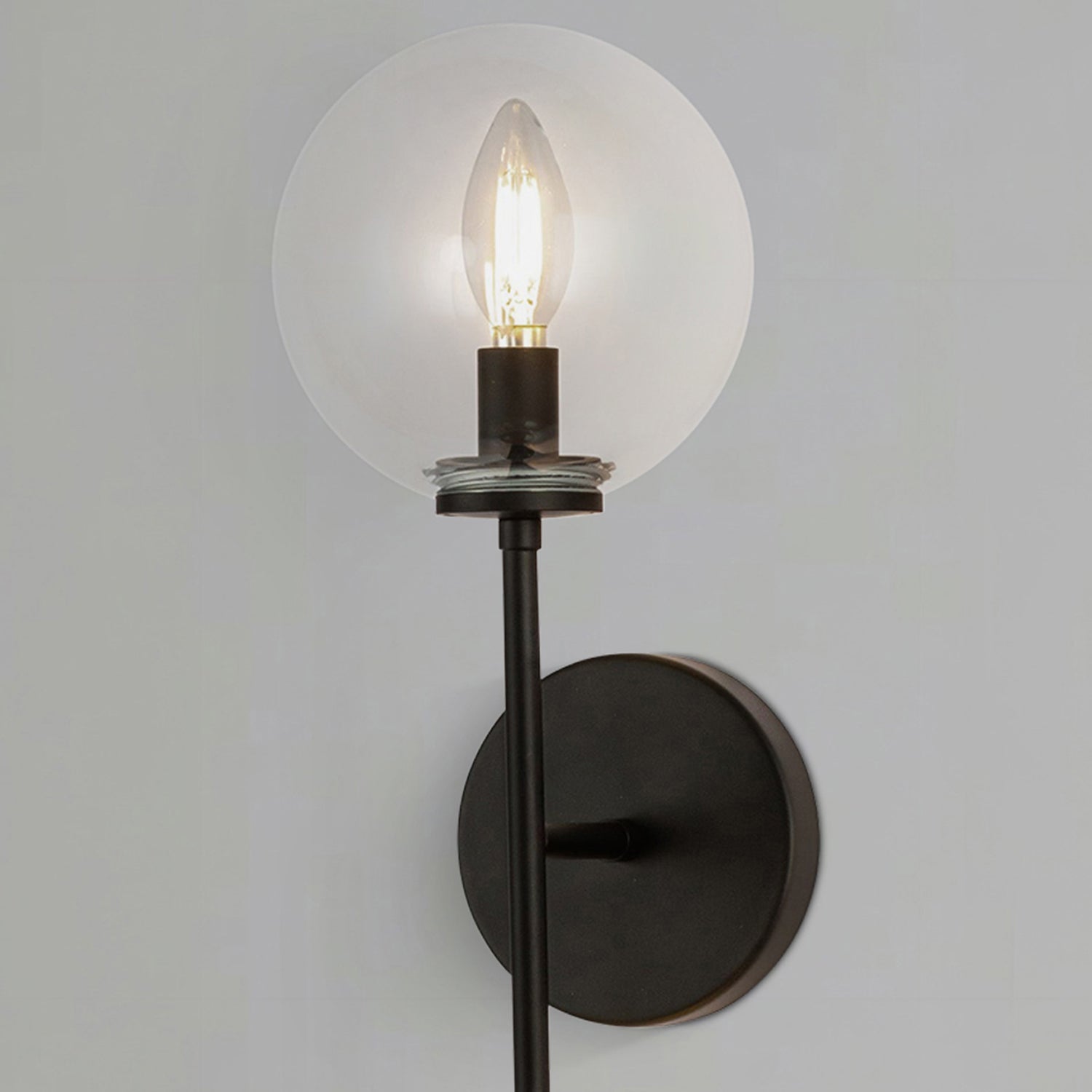 - A two-light wall/vanity light brightens above and below to lift the whole space