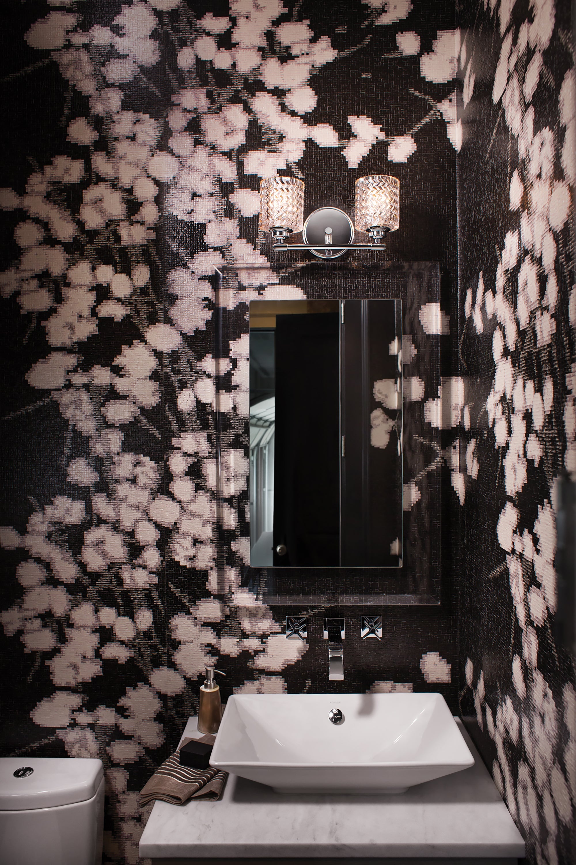 - A traditional two-light wall sconce brings distinctive glamour to your vanity or bath