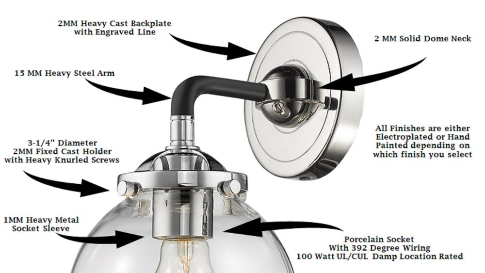 A rounded glass globe sets a stylishly modern tone in this wall sconce that brings vintage attitude in a compact footprint. The backplate and arcing support feel tailored and refined, adding a subtle gleam beside mirrors and doors. Clear curves leave the bulb visible, casting a charming glow across the wall. Its modest size lets it work alone or in groups without crowding your space. It's an easy accent that finishes a hallway, vanity, or reading nook with class and personality.