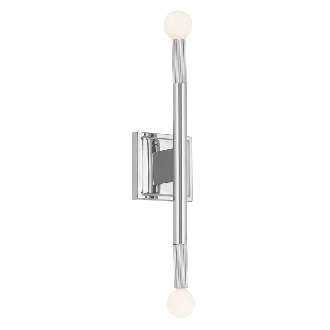 - A contemporary two-light tubular wall sconce invigorates spaces with its simply striking style