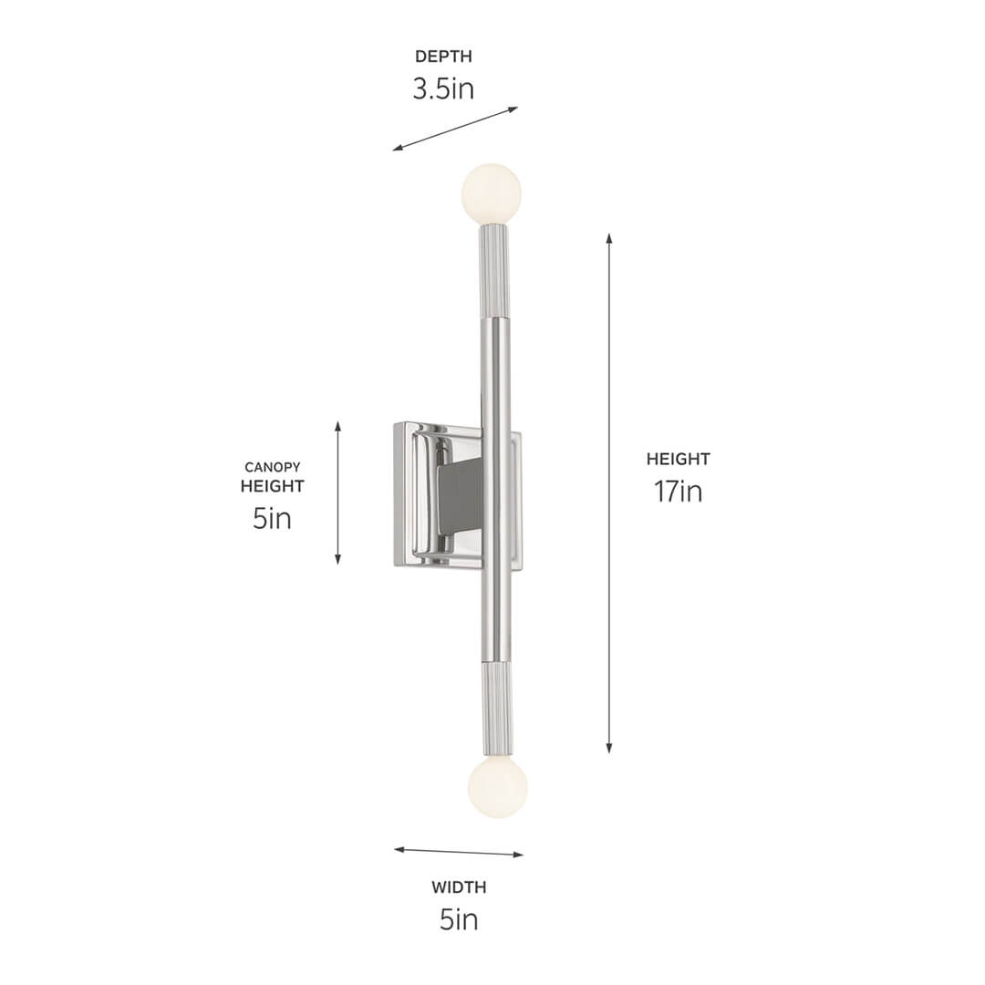 Bruno 5" Two Lights Wall Sconce, Polished Nickel
