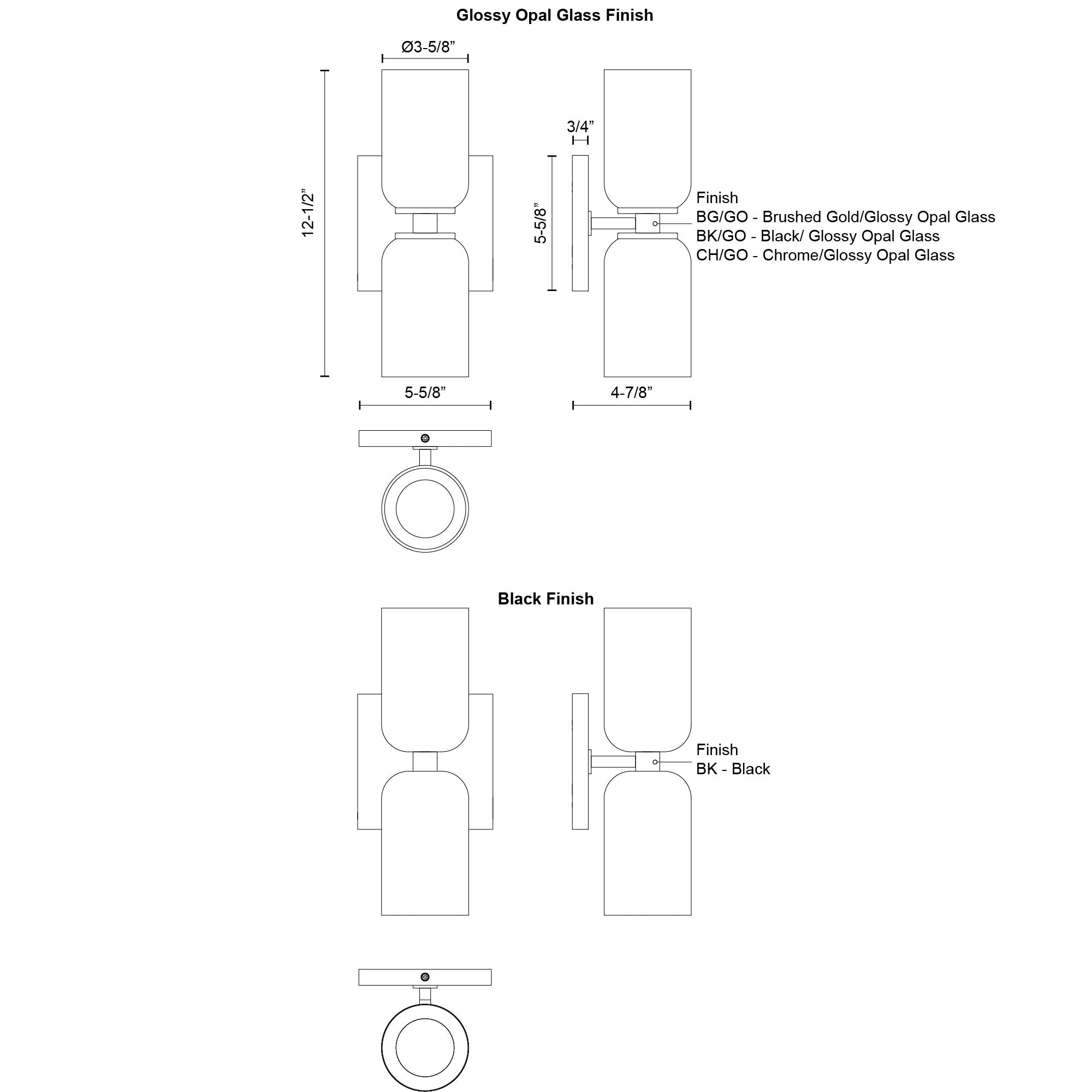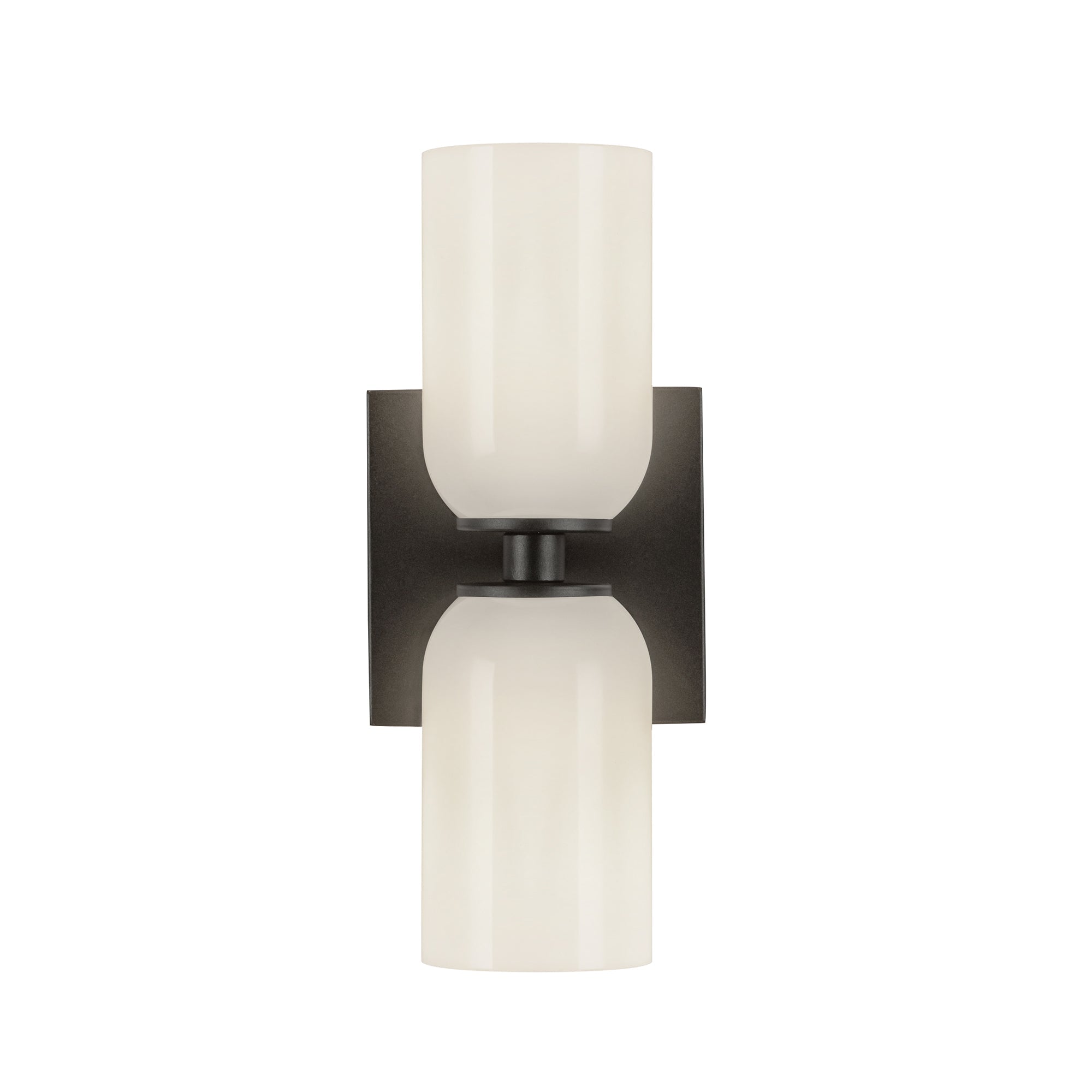 Sycamore 12" Two-Light Wall Sconce, Black/Glossy Opal Glass