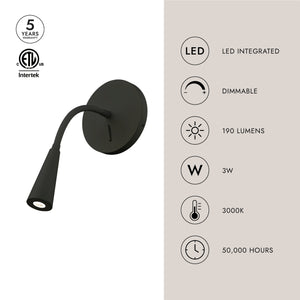 Conifer 5" LED Reading Wall Sconce, Black