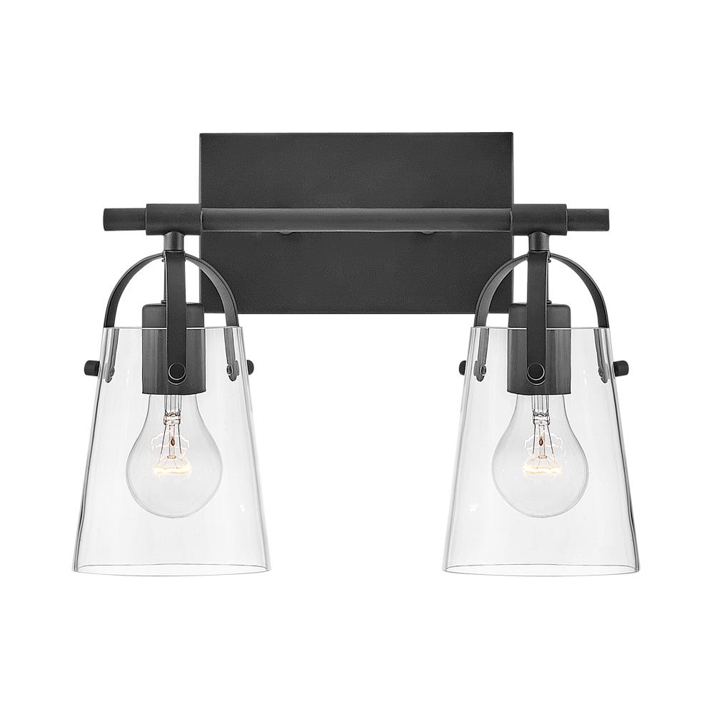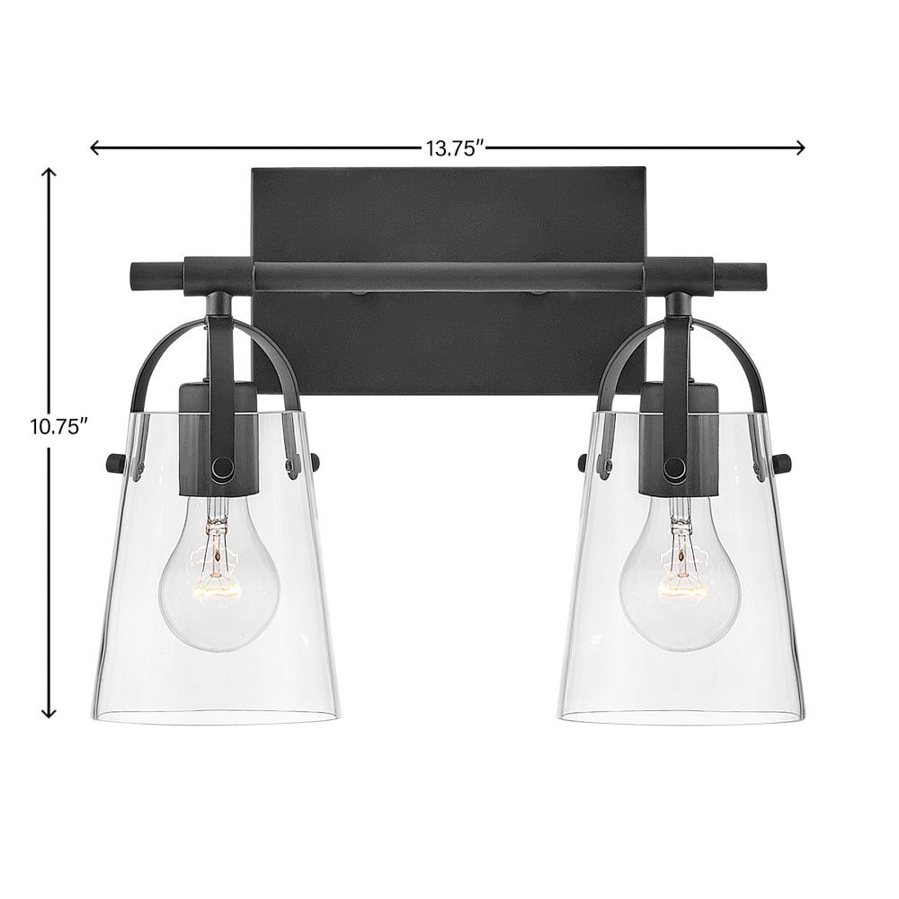 Asterism 14" Two Lights Small Vanity, Black / Clear Glass