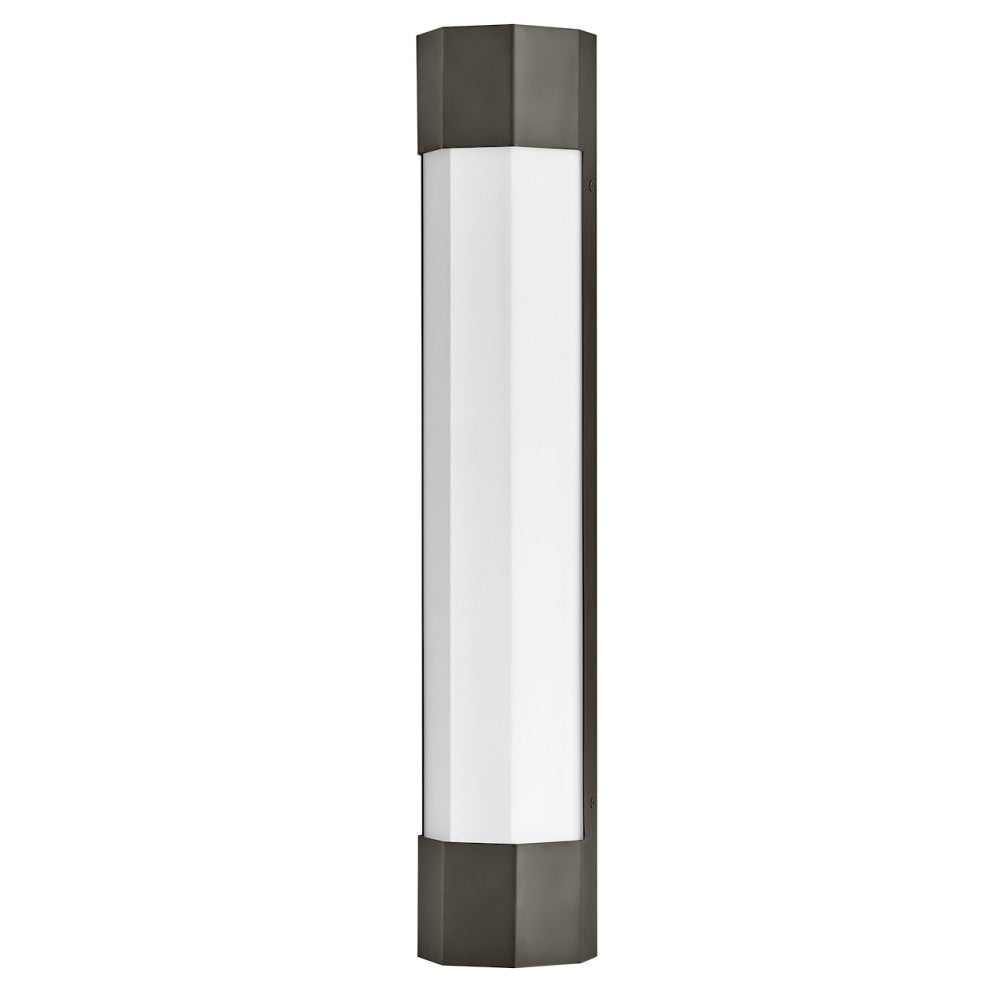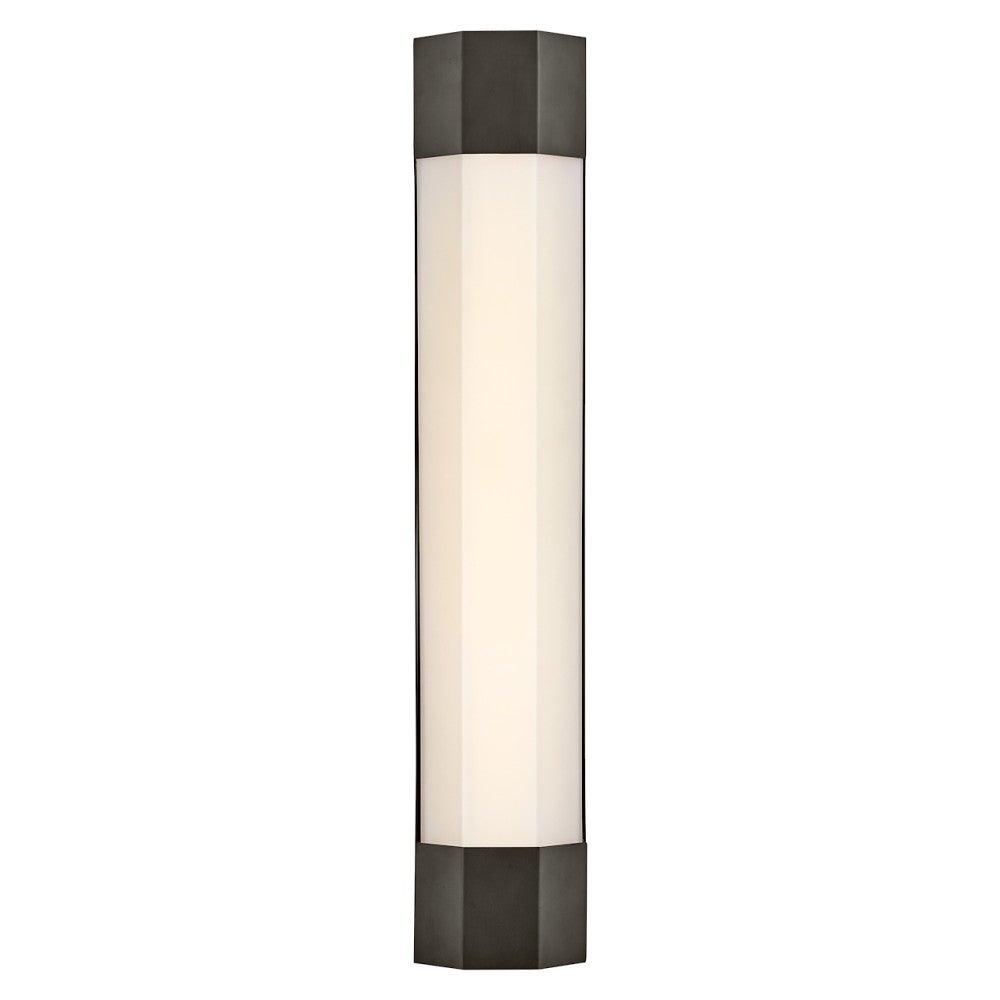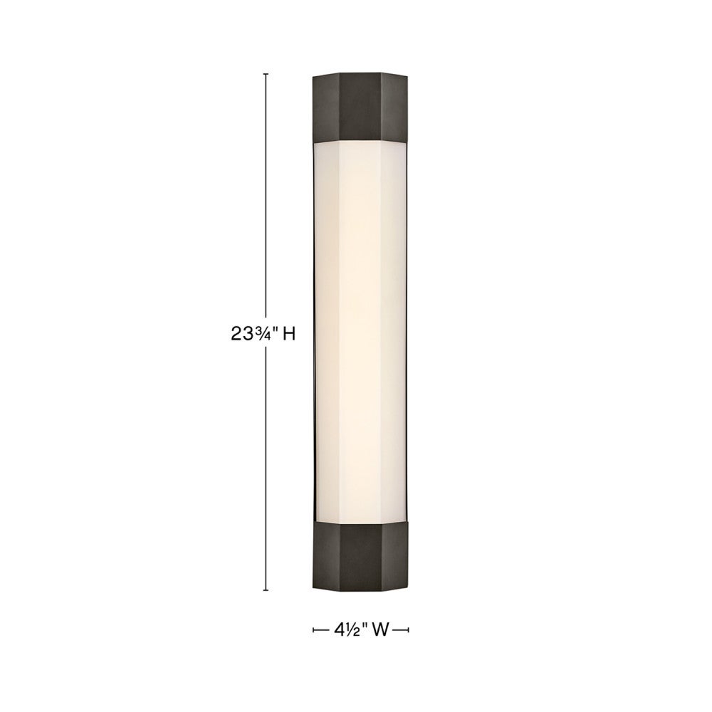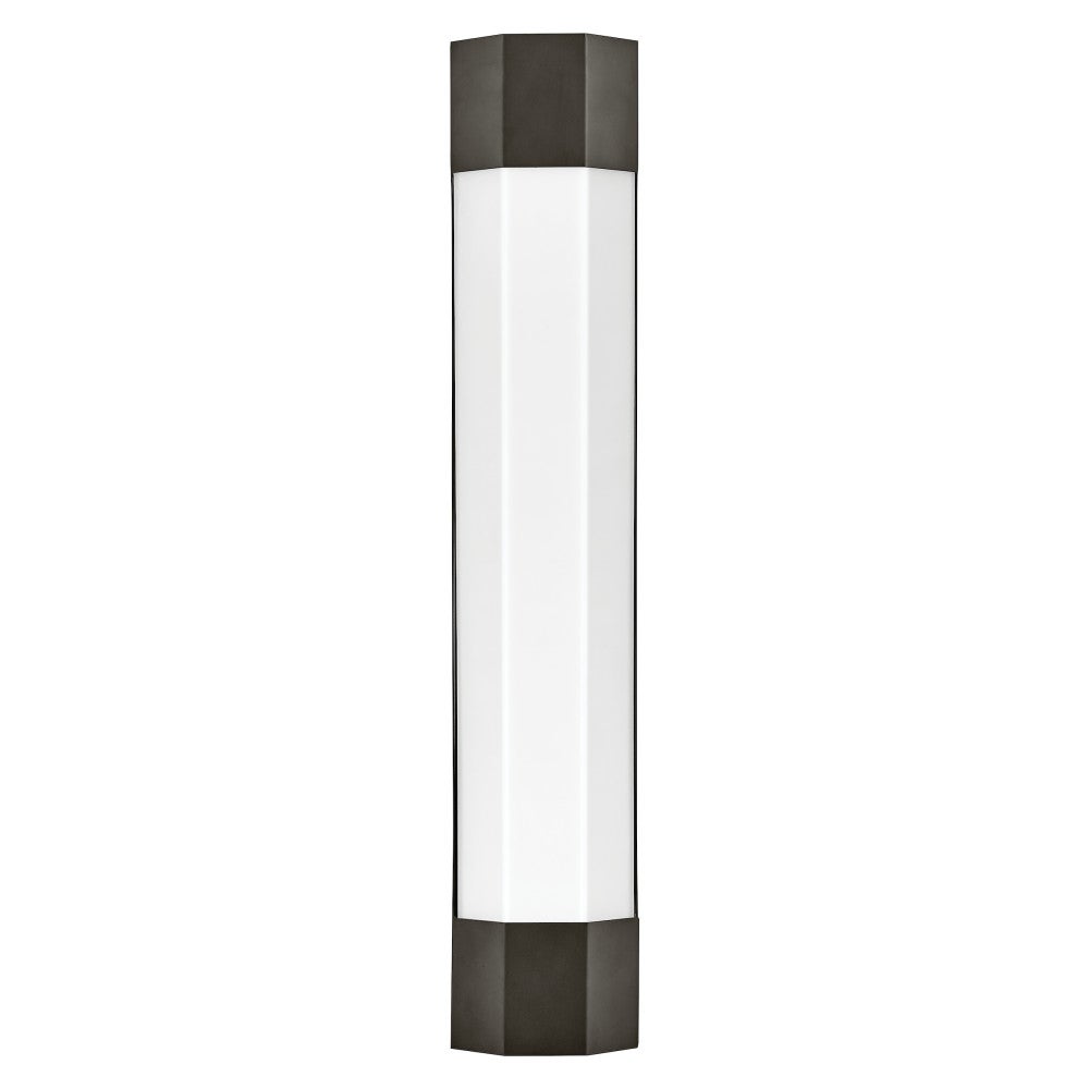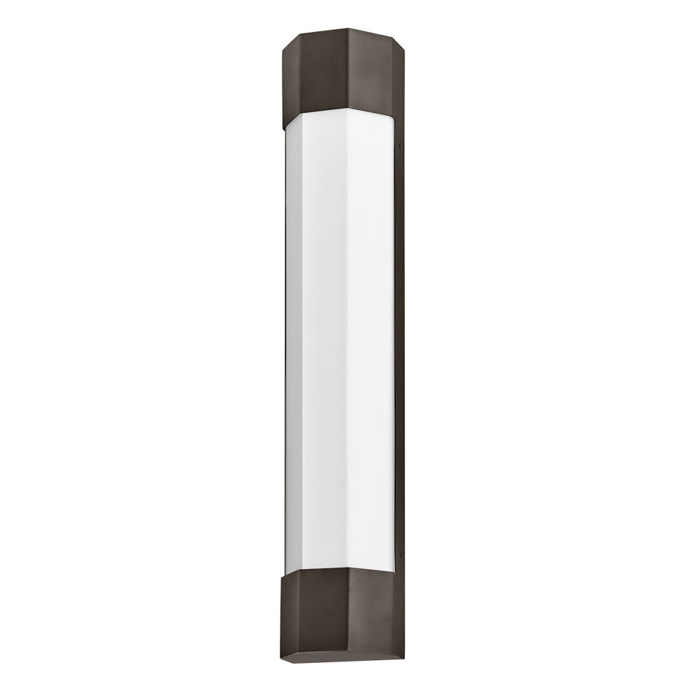 Add angular depth and geometric charm with the hexagonal silhouette of a modern LED wall sconce. Damp rated for maximum flexibility, it features hexagonal etched glass that radiates bright but diffused illumination for excellent lighting anywhere from the entry to your en suite bath. Distinctive end caps continue the geometric motif and create contrast and depth in a designer finish.
