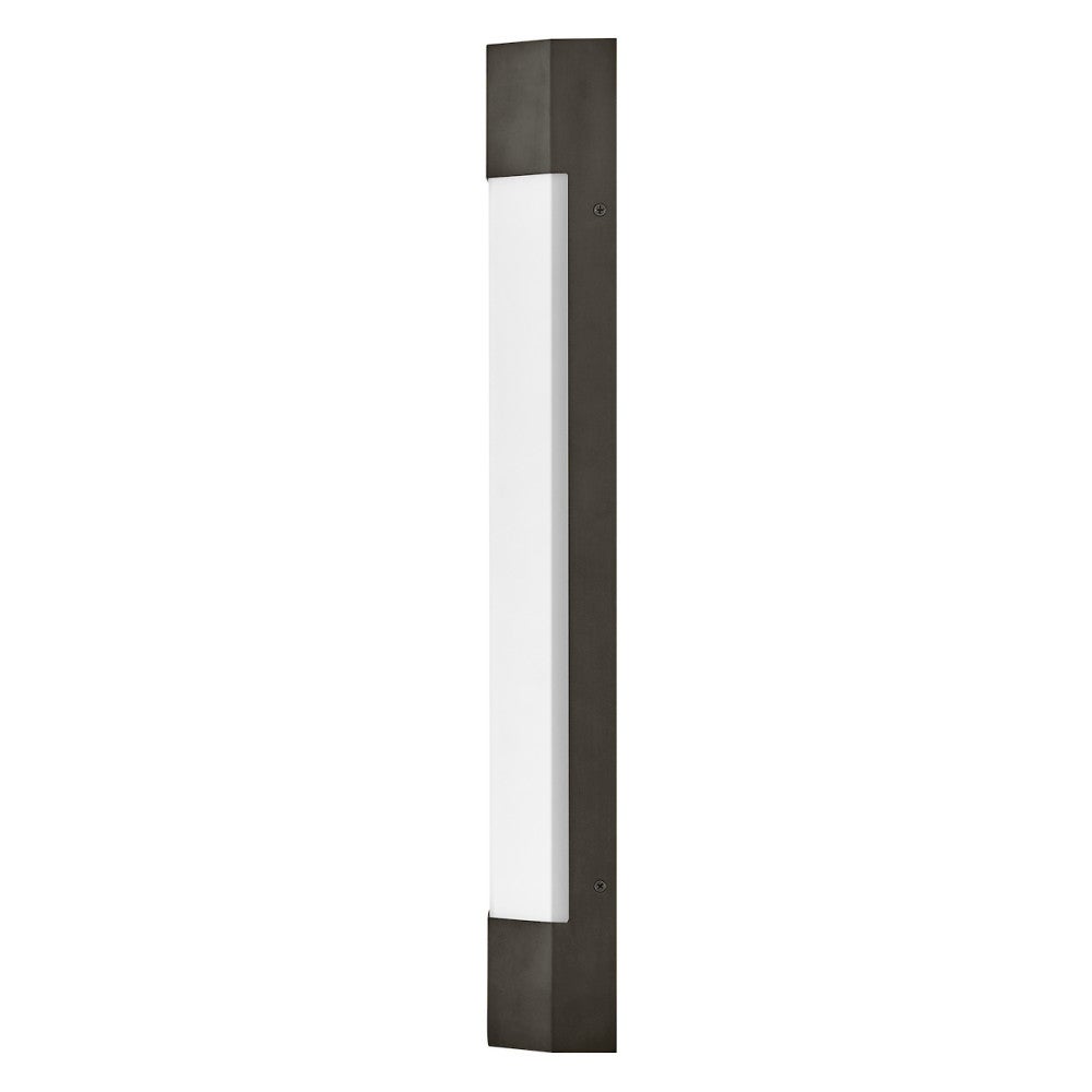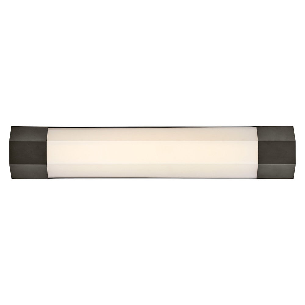 - Faceted end caps and geometric flair enhance this contemporary LED wall sconce