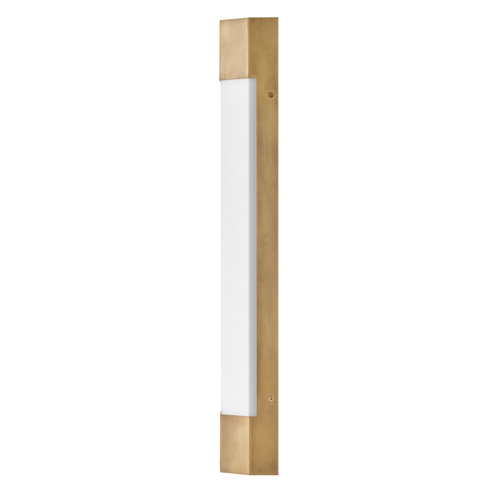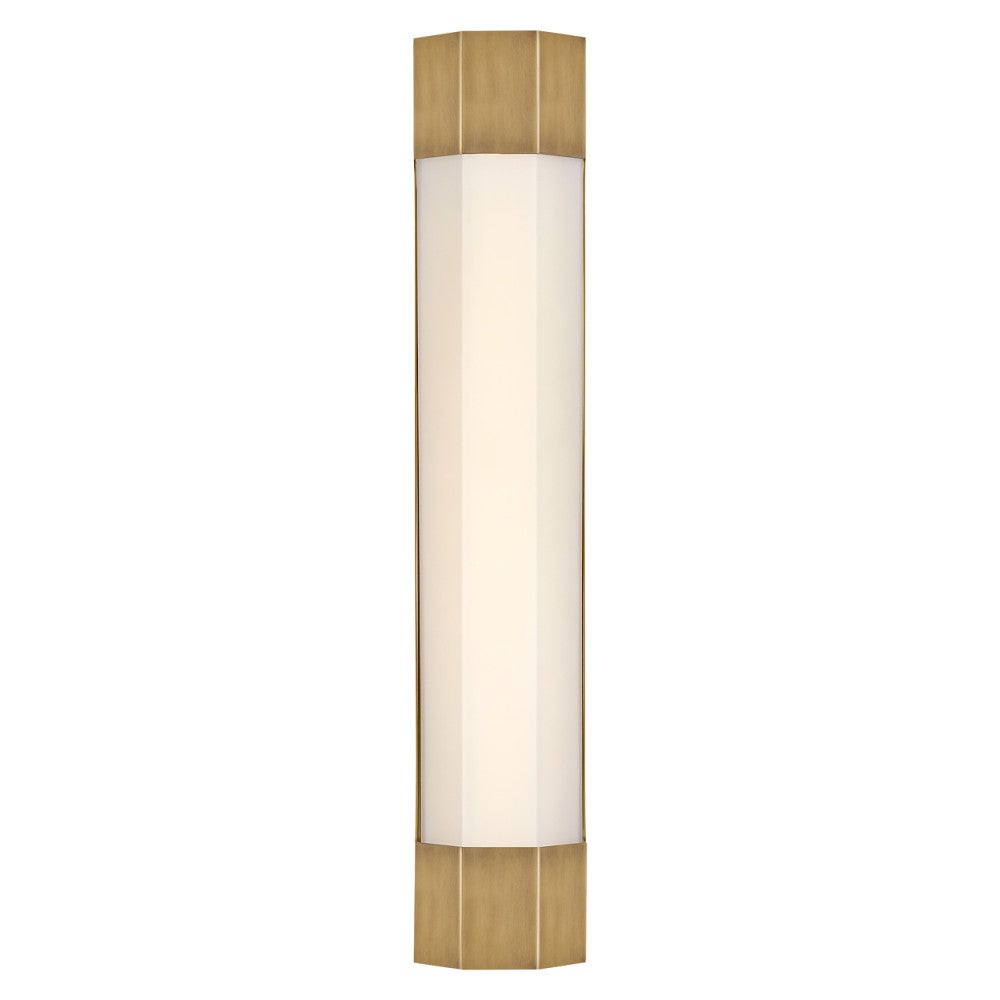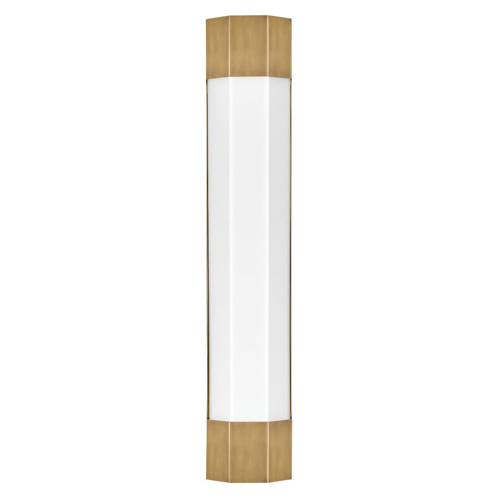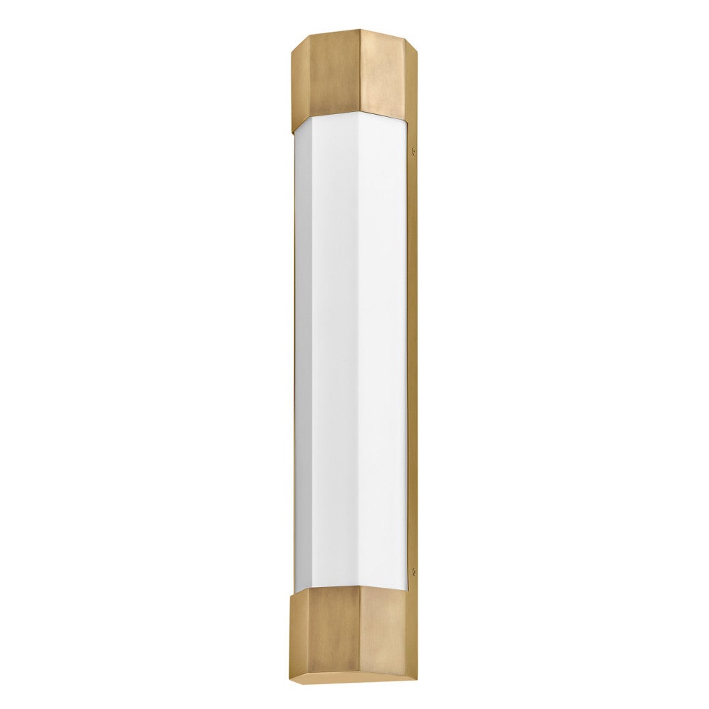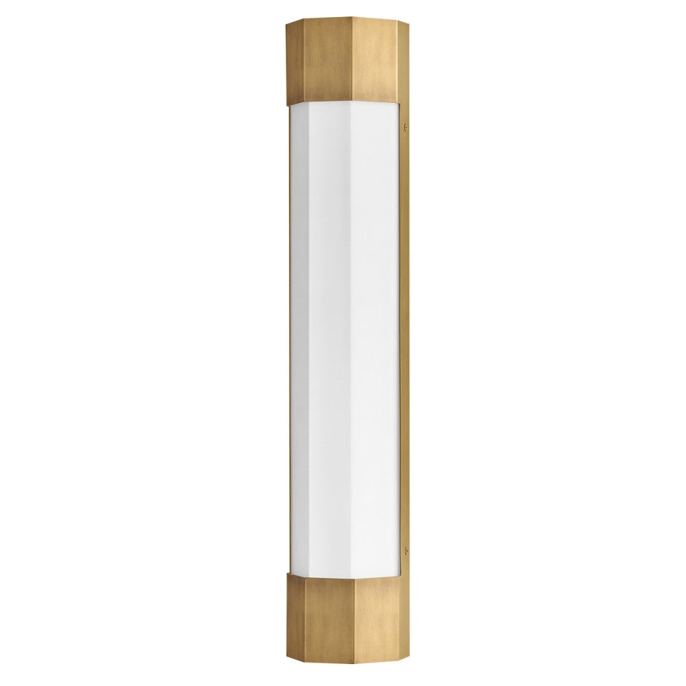 - Faceted end caps and geometric flair enhance this contemporary LED wall sconce
