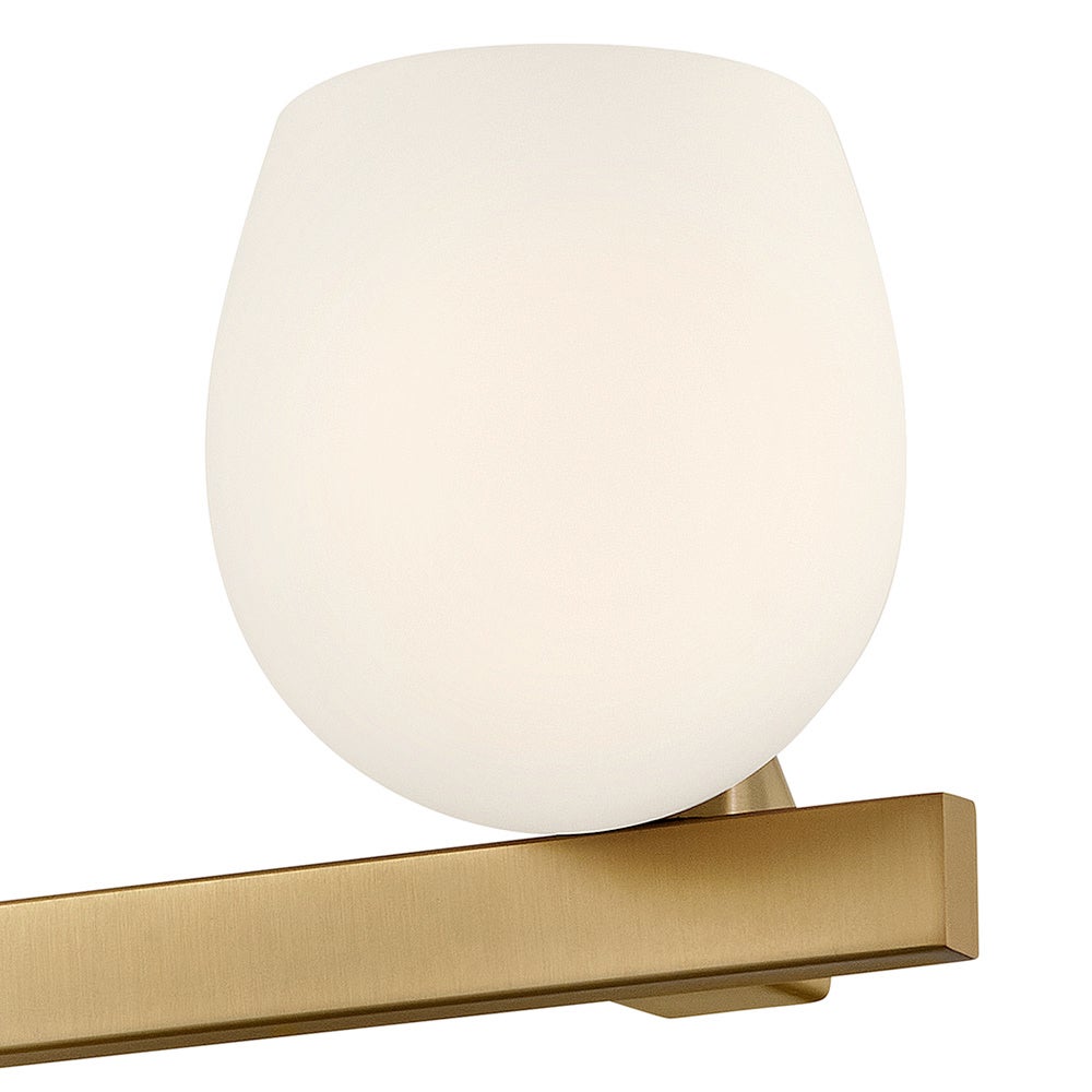 For mirrors that span a broader counter, this medium three-light bathroom vanity light arranges three opal globes in an even line that steadies the whole wall. Each shade softens the G9 LED bulb inside, creating light that is bright enough for precise grooming while still kind to skin tones and finishes. The slender bar and neatly edged backplate introduce a refined modern note that works in everything from streamlined new builds to refreshed traditional baths. Because the fixture can be mounted with the globes pointing upward or downward, you can decide whether to emphasize the ceiling or the countertop. Placed over a double sink or a single oversized mirror, it helps daily routines move more smoothly by keeping your space evenly illuminated.