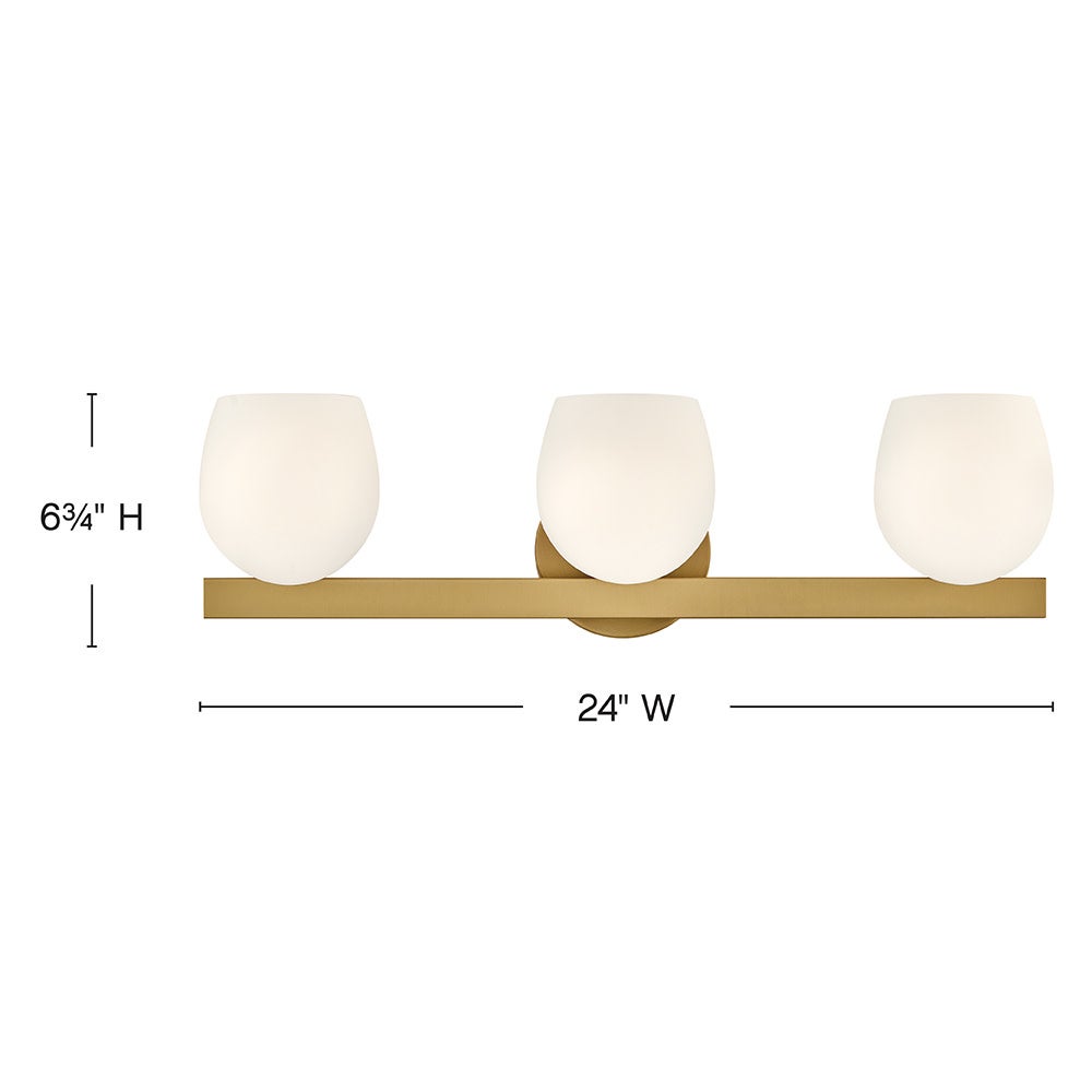 Crux 24" Three Lights Medium Vanity, Lacquered Brass