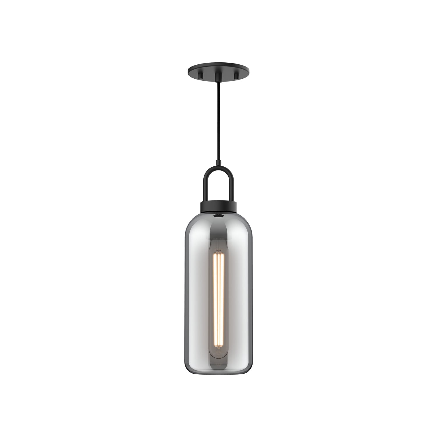 Dallas 5" Pendant Light, Matte Black/Smoked Solid Glass