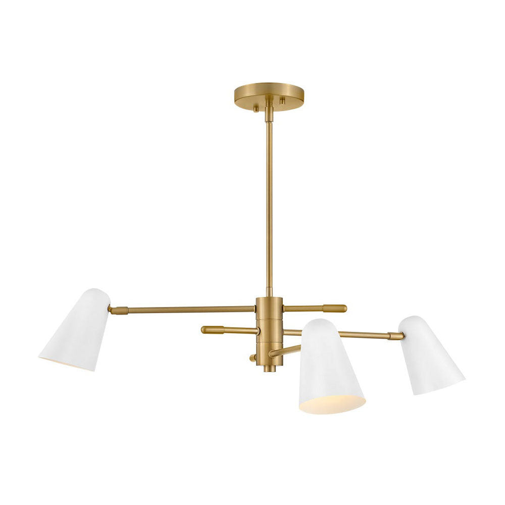 Sason 30" Three Lights Medium Convertible Mobile Single Tier Chandelier, Lacquered Brass / Matte White