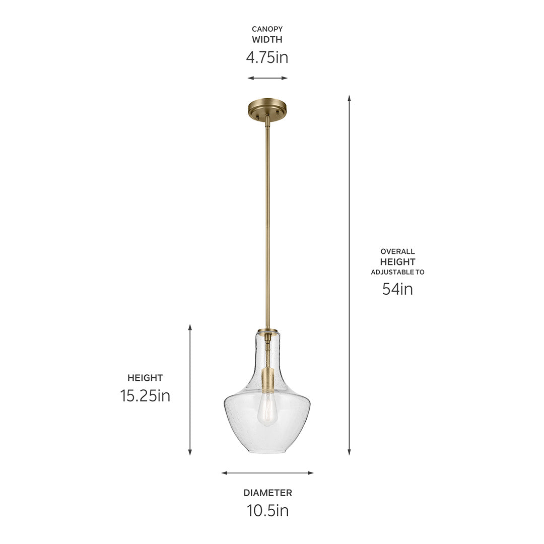 Vance 10" One Light Pendant, Clear Seeded Glass / Natural Brass