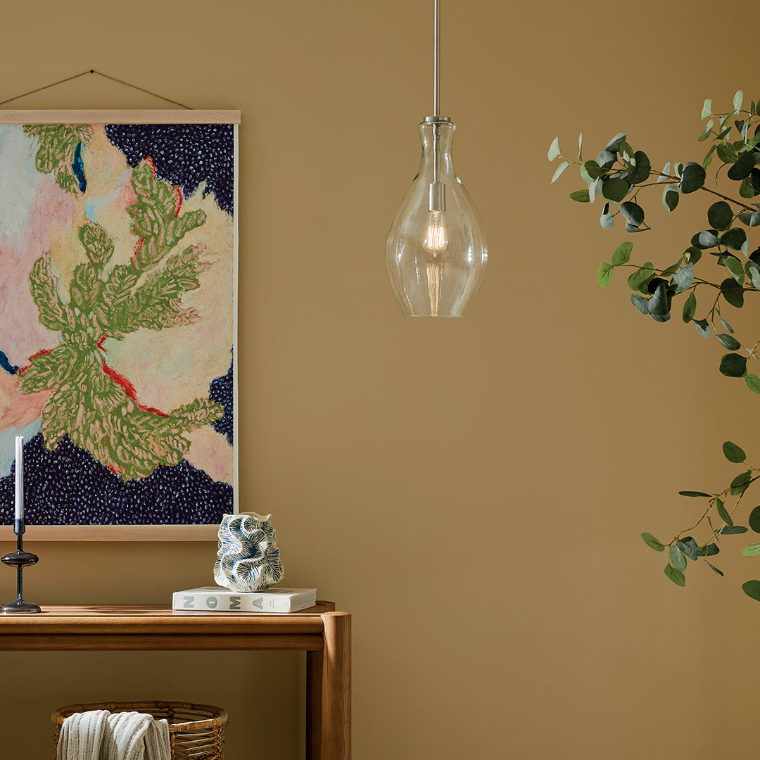 • Blown glass shade spreads ambient light for welcoming, everyday brightness