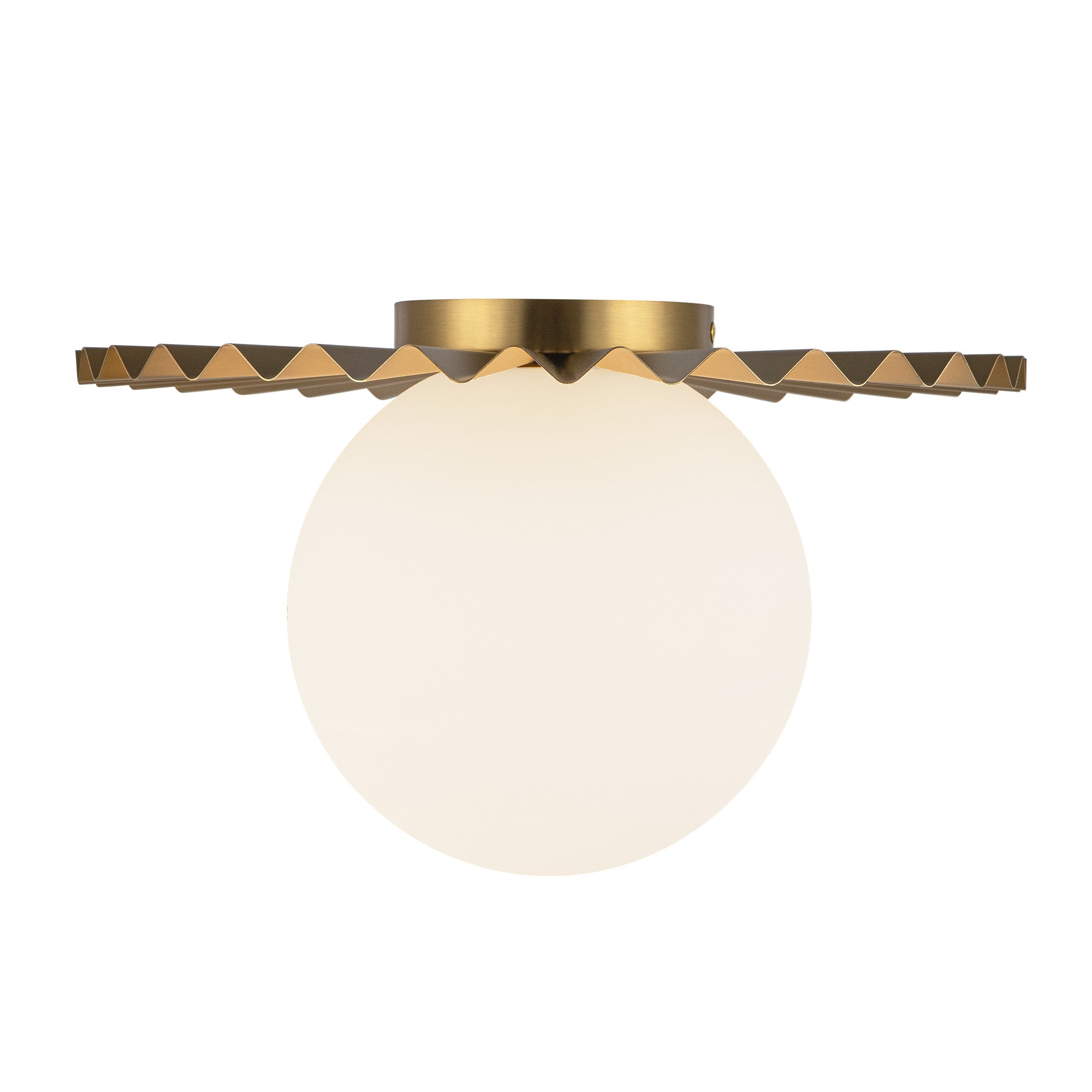 A pleated canopy crowns a glowing opal glass globe, giving this one-light flush mount a lively yet disciplined spirit. The folds cast neat shadows that animate the ceiling plane with subtle movement, so that its illumination feels warm and flattering throughout the day. Tailored and cheerful, it works naturally with both classic and modern rooms.
